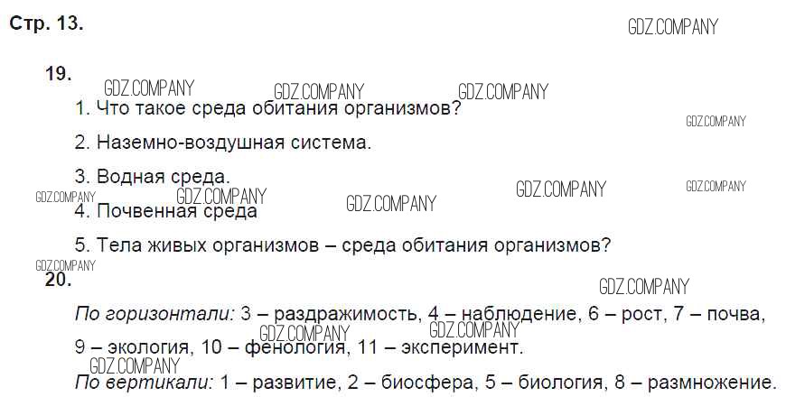 Здесь готовые ответы по Биологии за 5 (пятый) класс от Пасечник Рабочая тетрадь Вертикаль (издательство: Дрофа от 2015 г.) № стр. 13