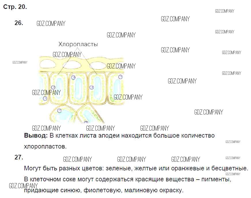 Здесь готовые ответы по Биологии за 5 (пятый) класс от Пасечник Рабочая тетрадь Вертикаль (издательство: Дрофа от 2015 г.) № стр. 20
