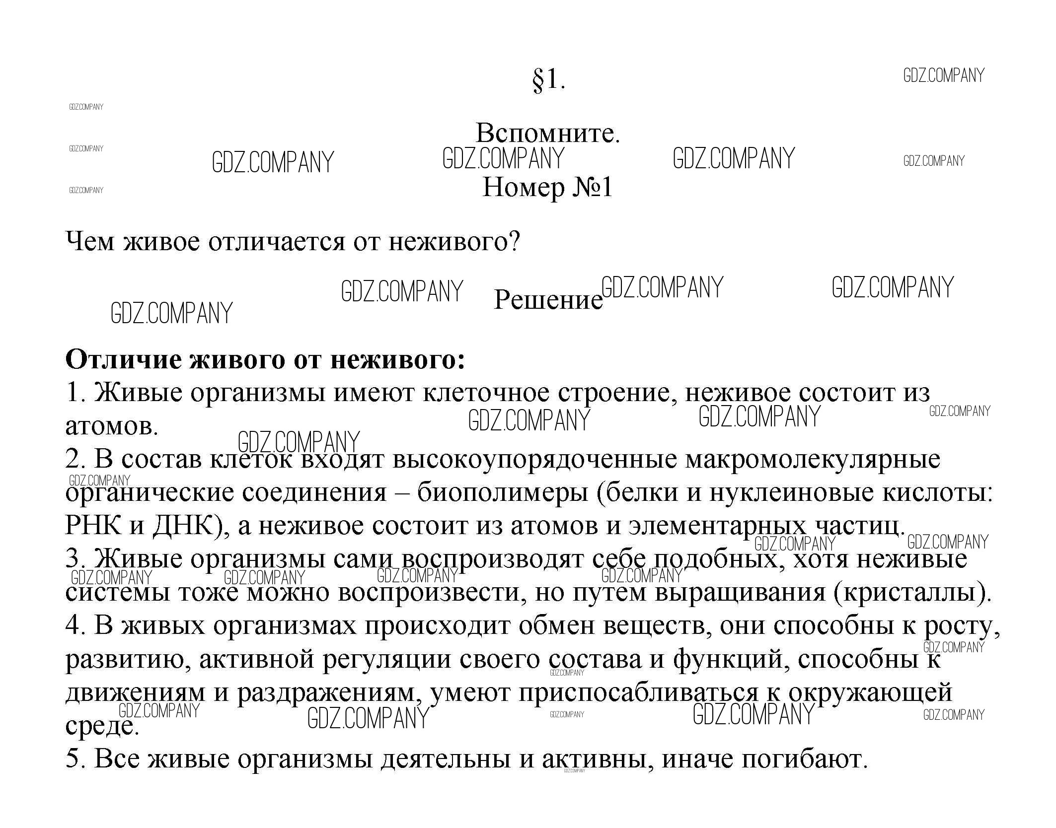 Здесь готовые ответы по Биологии за 5 (пятый) класс от Пасечник, Суматохин, Калинова, Гапонюк Учебник Линия жизни (издательство: Просвещение от 2020 г.) № 1