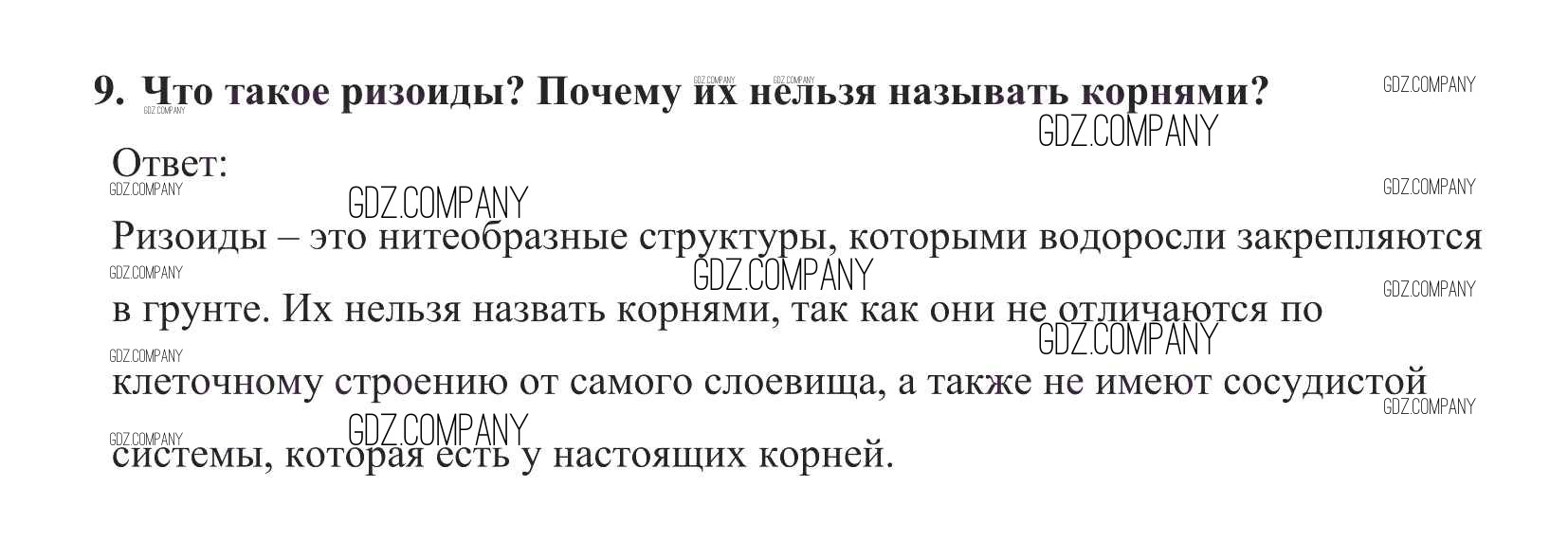 Здесь готовые ответы по Биологии за 5 (пятый) класс от Пасечник Учебник УМК (издательство: Дрофа от 2016 г.) № 9