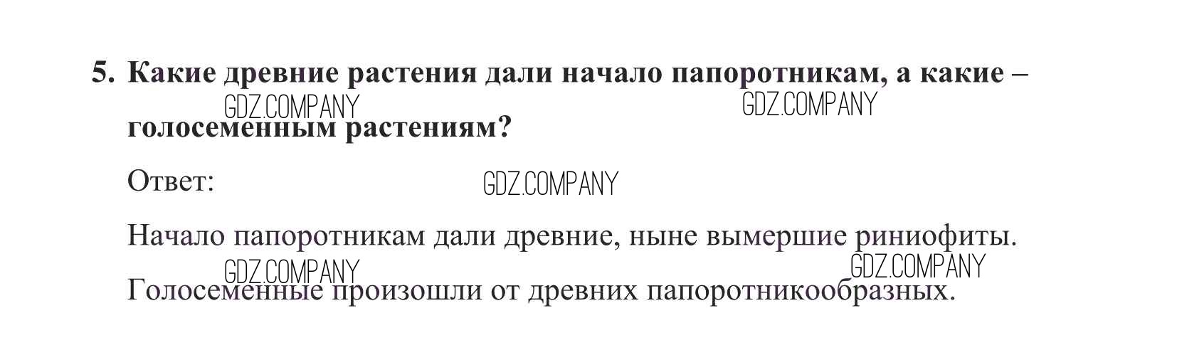 Здесь готовые ответы по Биологии за 5 (пятый) класс от Пасечник Учебник УМК (издательство: Дрофа от 2016 г.) № 5