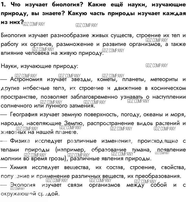 Здесь готовые ответы по Биологии за 5 (пятый) класс от Сивоглазов, Плешаков Учебник (издательство: Дрофа от 2020 г.) № 1