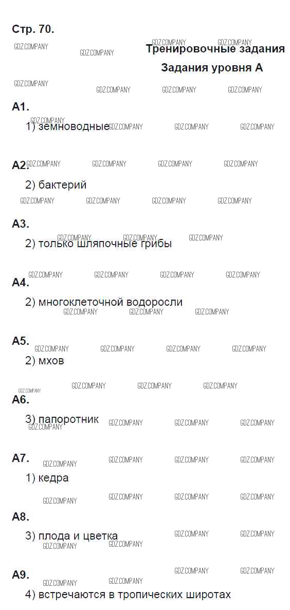 Здесь готовые ответы по Биологии за 5 (пятый) класс от Сонин Рабочая тетрадь Вертикаль (издательство: Дрофа от 2017 г.) № стр. 70