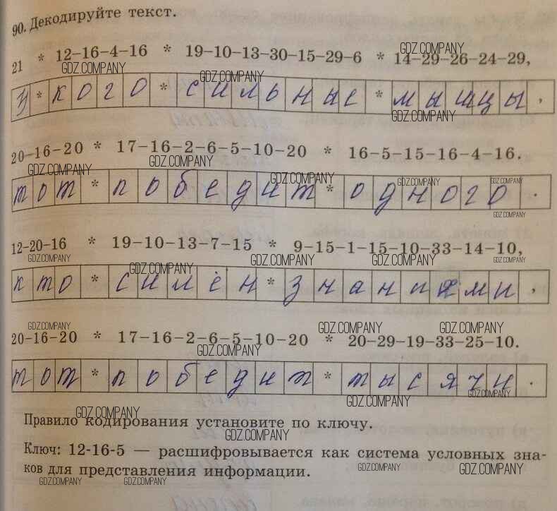 Здесь готовые ответы по Информатике за 5 (пятый) класс от Босова Рабочая тетрадь (издательство: Бином от 2016 г.) № 90