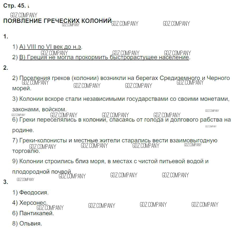 Здесь готовые ответы по Истории за 5 (пятый) класс от Абрамов, Абрамова Рабочая тетрадь Вертикаль (издательство: Дрофа от 2019 г.) № стр. 45