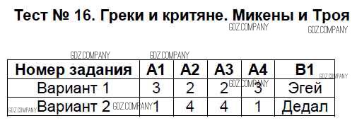 тест / тест №16. Греки и критяне. Микены и Троя