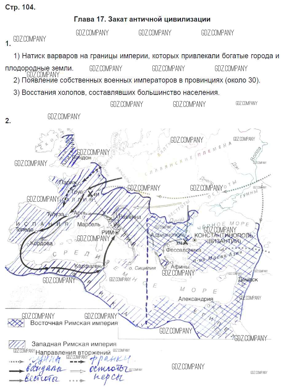 Здесь готовые ответы по Истории за 5 (пятый) класс от Жукова Рабочая тетрадь Инновационная школа (издательство: Русское слово от 2018 г.) № 104