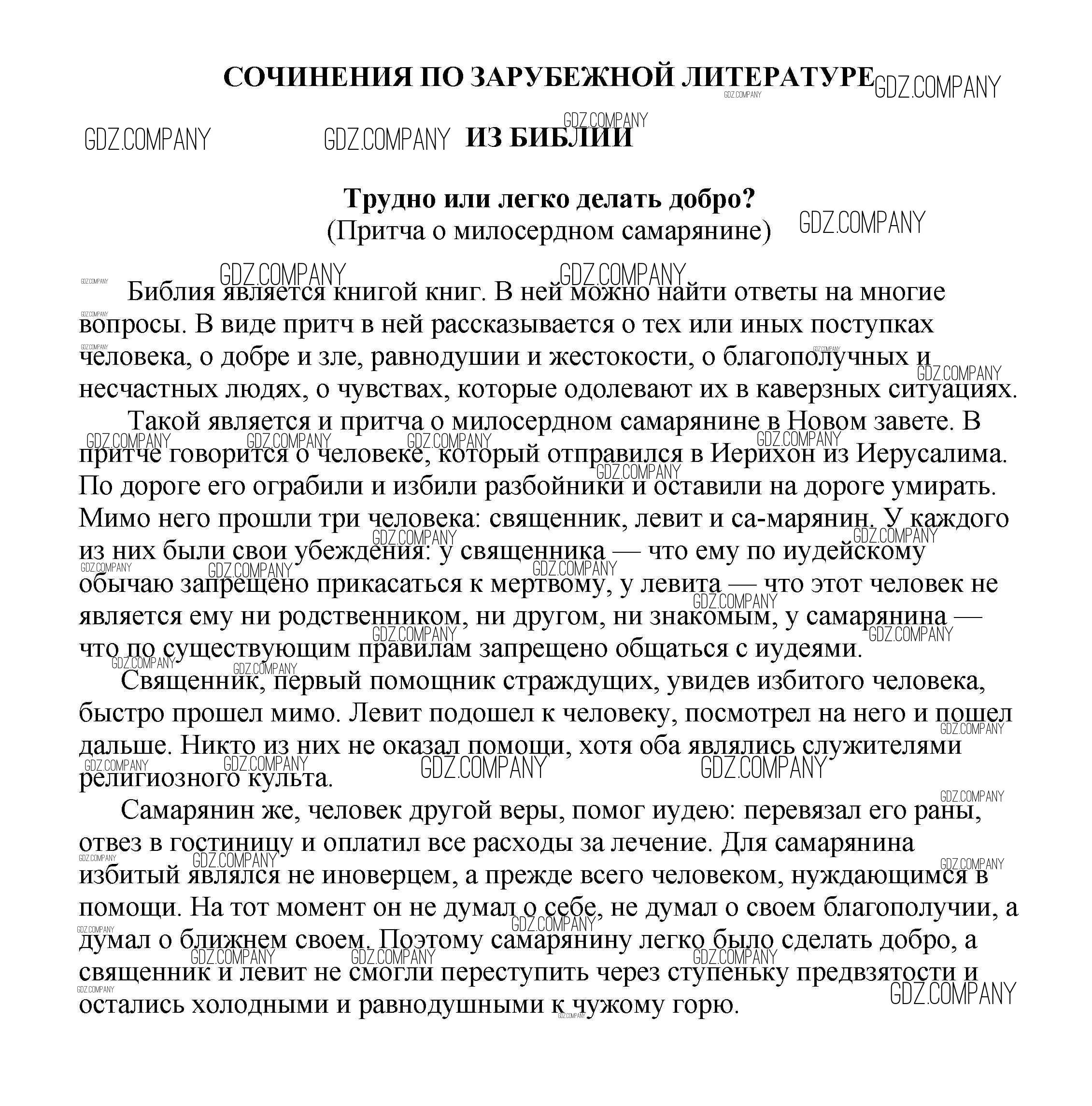 6 класс / сочинения по зарубежной литературе / Трудно или легко делать добро? (Притча о милосердном самарянине)
