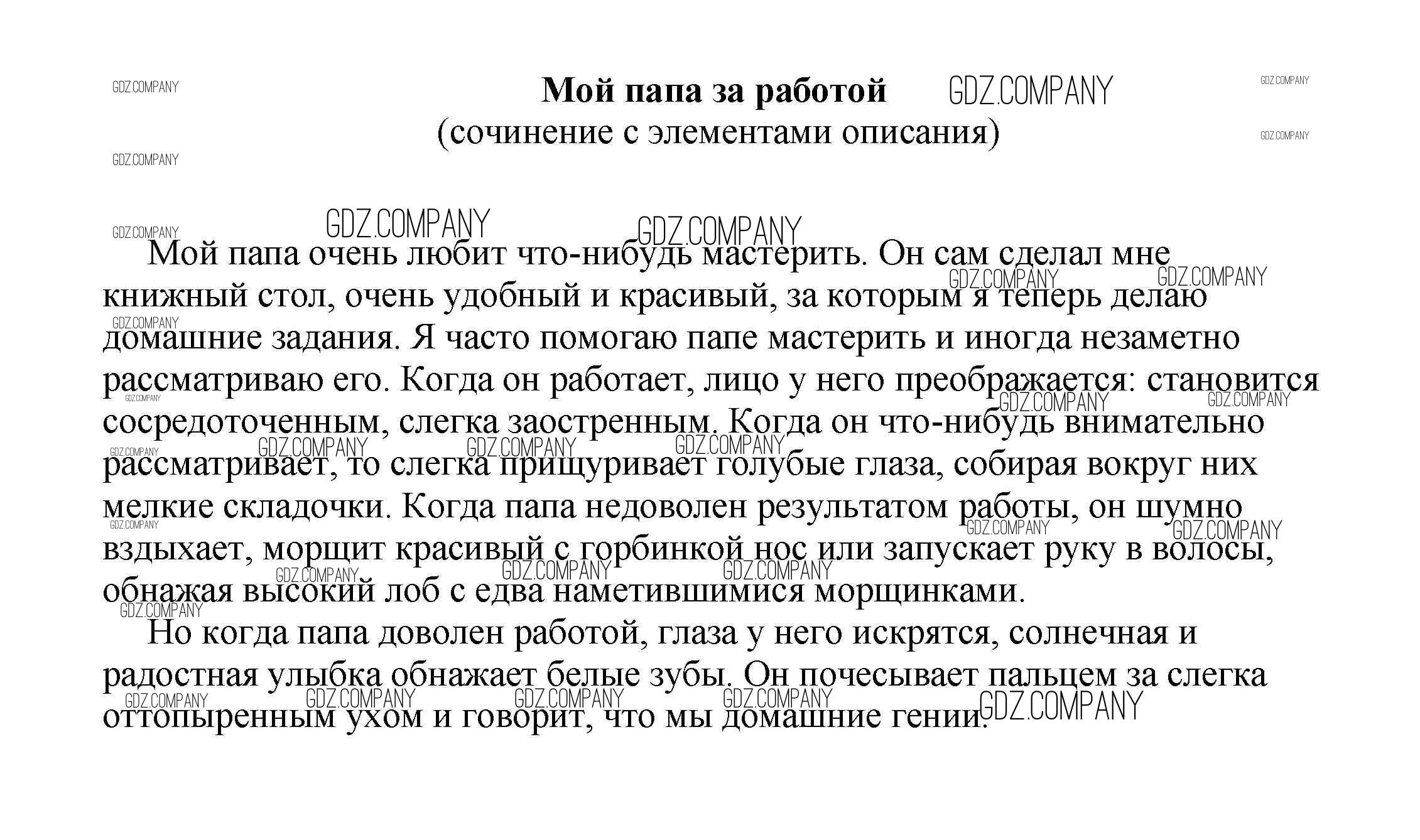 Здесь готовые ответы по Литературе за 5 (пятый) класс от Белик, Музычук Сочинения (издательство: Баро-Пресс от 2017 г.) № Мой папа за работой (сочинение с элементами описания)
