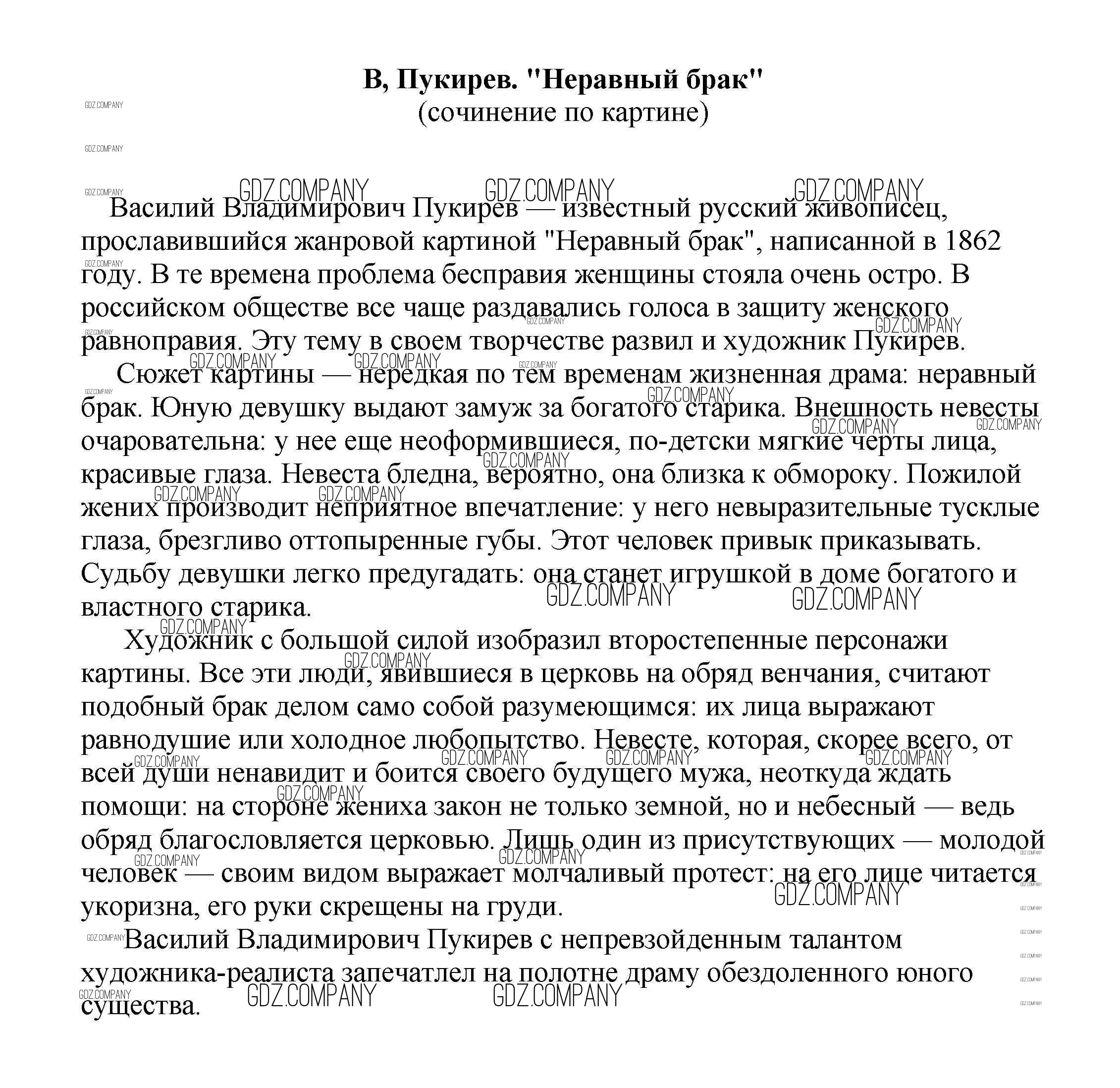 Здесь готовые ответы по Литературе за 5 (пятый) класс от Белик, Музычук Сочинения (издательство: Баро-Пресс от 2017 г.) № В, Пукирев. "Неравный брак" (сочинение по картине)
