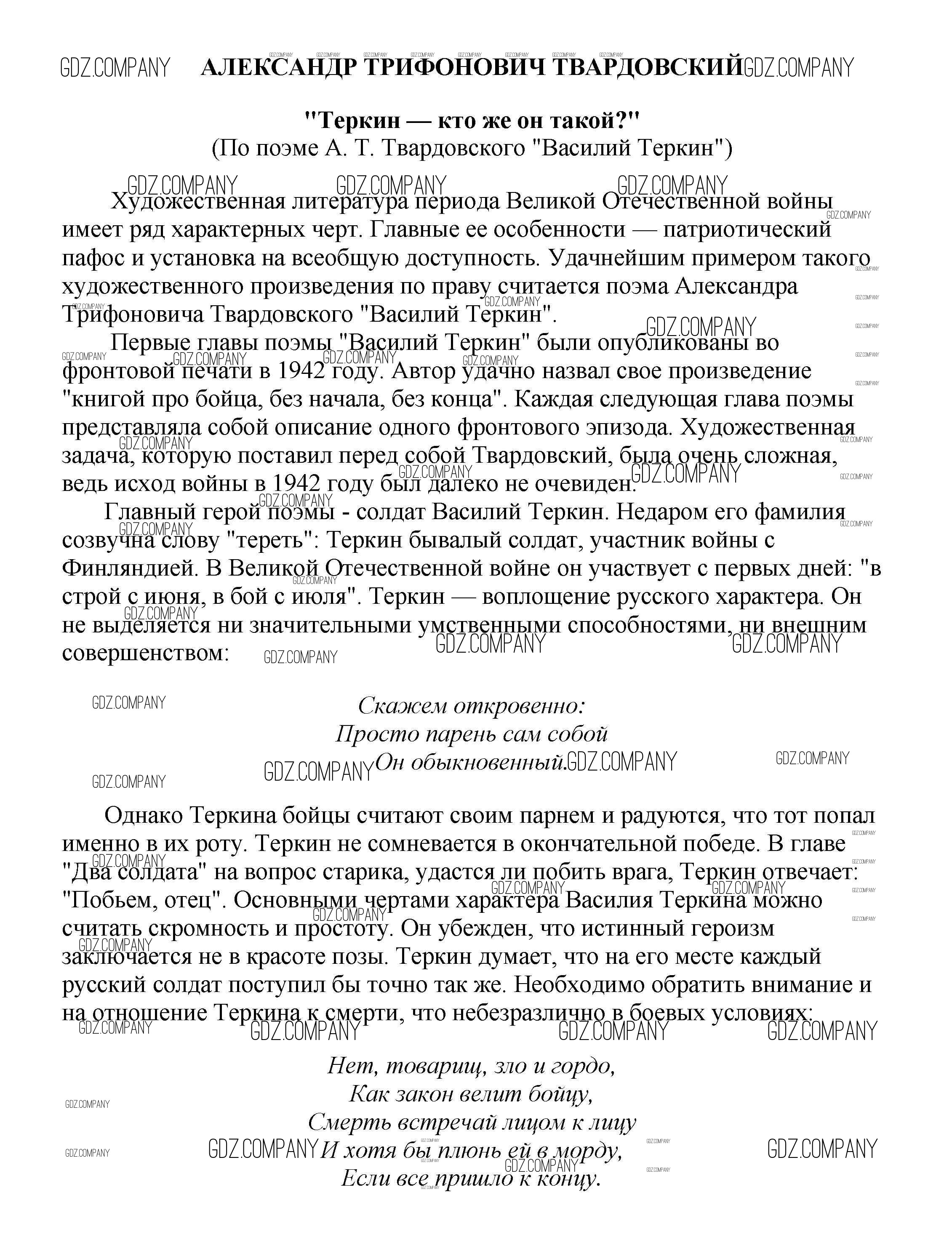 Здесь готовые ответы по Литературе за 5 (пятый) класс от Белик, Музычук Сочинения (издательство: Баро-Пресс от 2017 г.) № "Теркин — кто же он такой?" (По поэме А. Т. Твардовского "Василий Теркин")