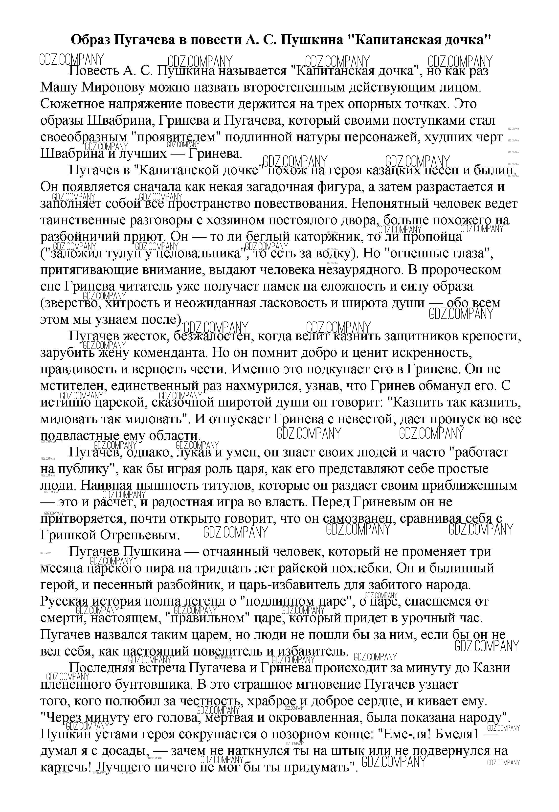 8 класс / сочинения по русской литературе / Образ Пугачева в повести А. С. Пушкина "Капитанская дочка"