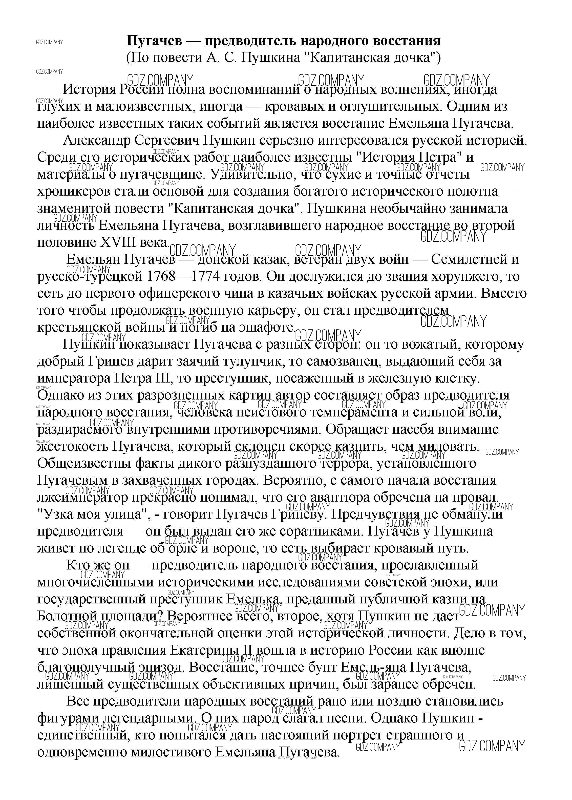 Здесь готовые ответы по Литературе за 5 (пятый) класс от Белик, Музычук Сочинения (издательство: Баро-Пресс от 2017 г.) № Пугачев — предводитель народного восстания (По повести А. С. Пушкина "Капитанская дочка")