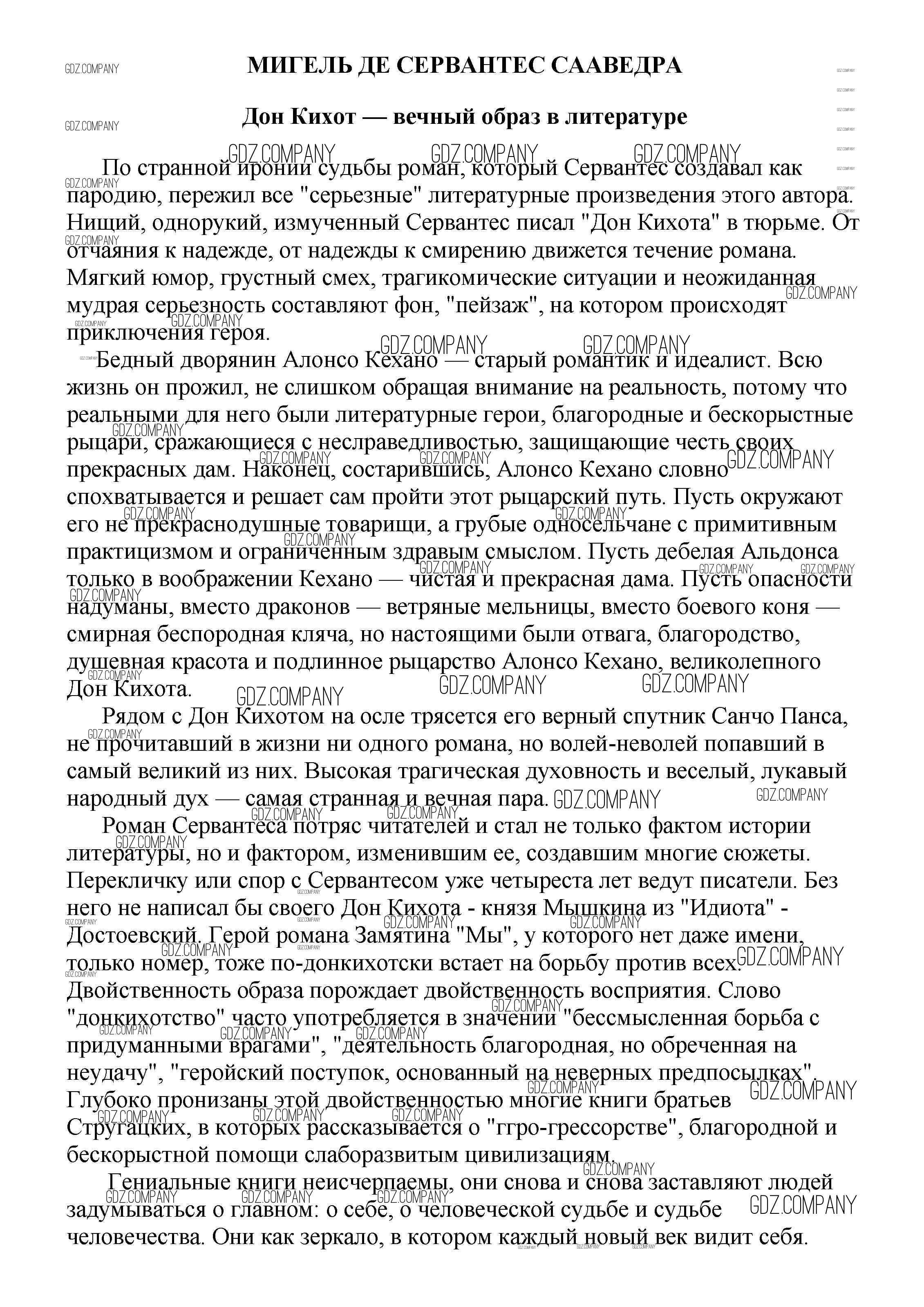Здесь готовые ответы по Литературе за 5 (пятый) класс от Белик, Музычук Сочинения (издательство: Баро-Пресс от 2017 г.) № Дон Кихот — вечный образ в литературе