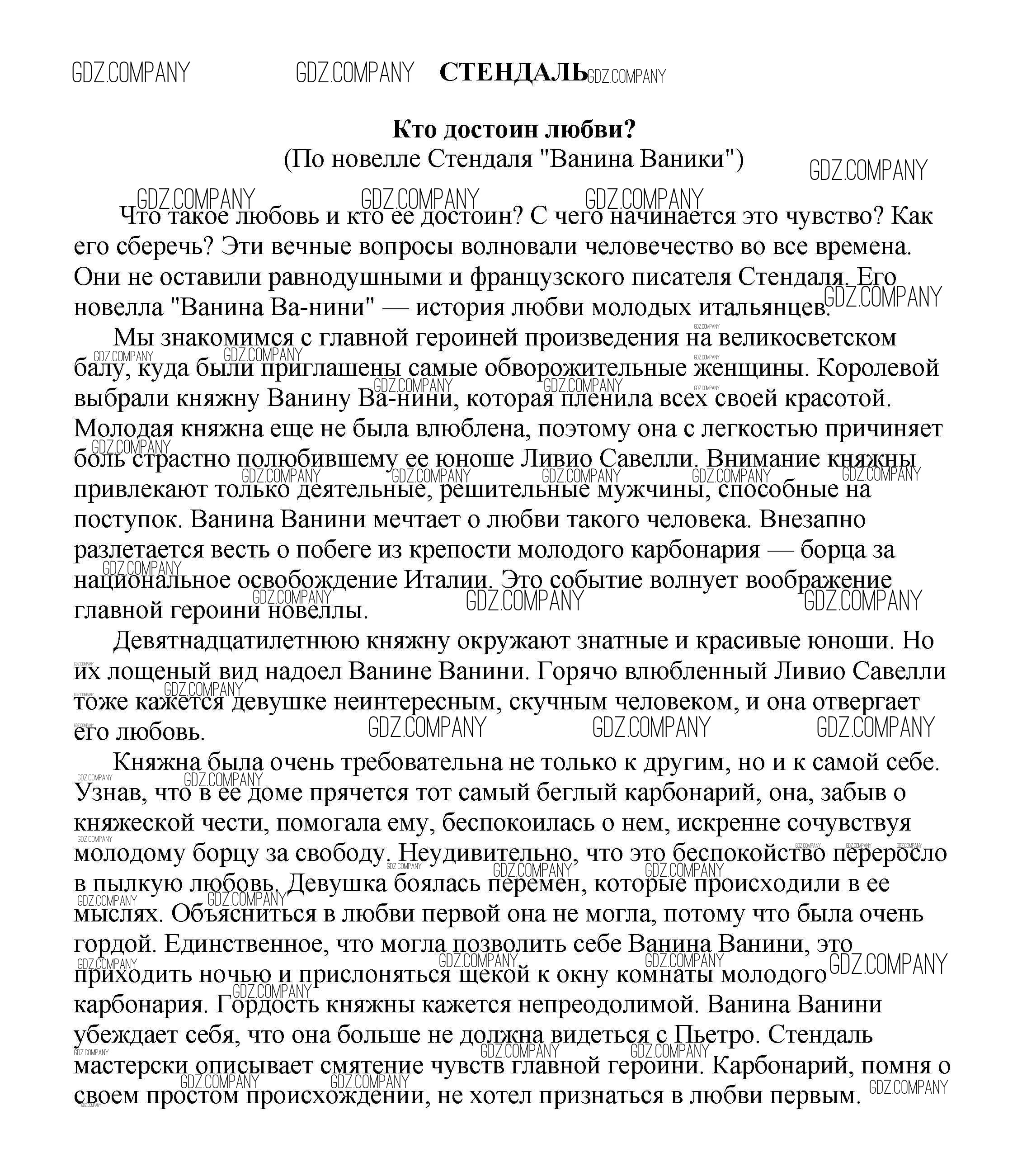 Здесь готовые ответы по Литературе за 5 (пятый) класс от Белик, Музычук Сочинения (издательство: Баро-Пресс от 2017 г.) № Кто достоин любви? (По новелле Стендаля "Ванина Ваники")