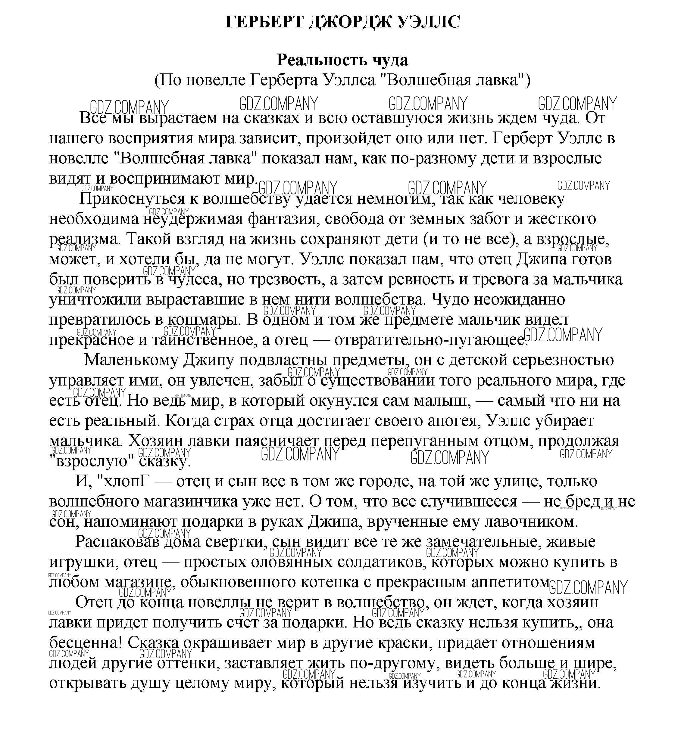 Здесь готовые ответы по Литературе за 5 (пятый) класс от Белик, Музычук Сочинения (издательство: Баро-Пресс от 2017 г.) № Реальность чуда (По новелле Герберта Уэллса "Волшебная лавка")