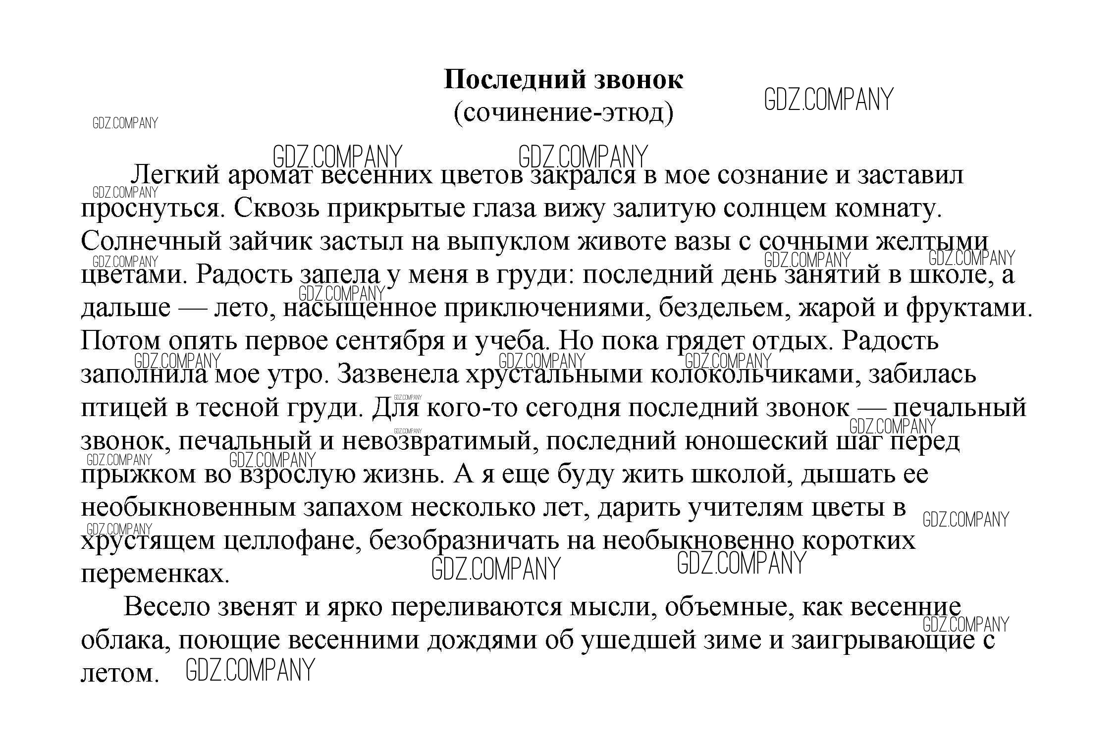 Здесь готовые ответы по Литературе за 5 (пятый) класс от Белик, Музычук Сочинения (издательство: Баро-Пресс от 2017 г.) № Последний звонок (сочинение-этюд)