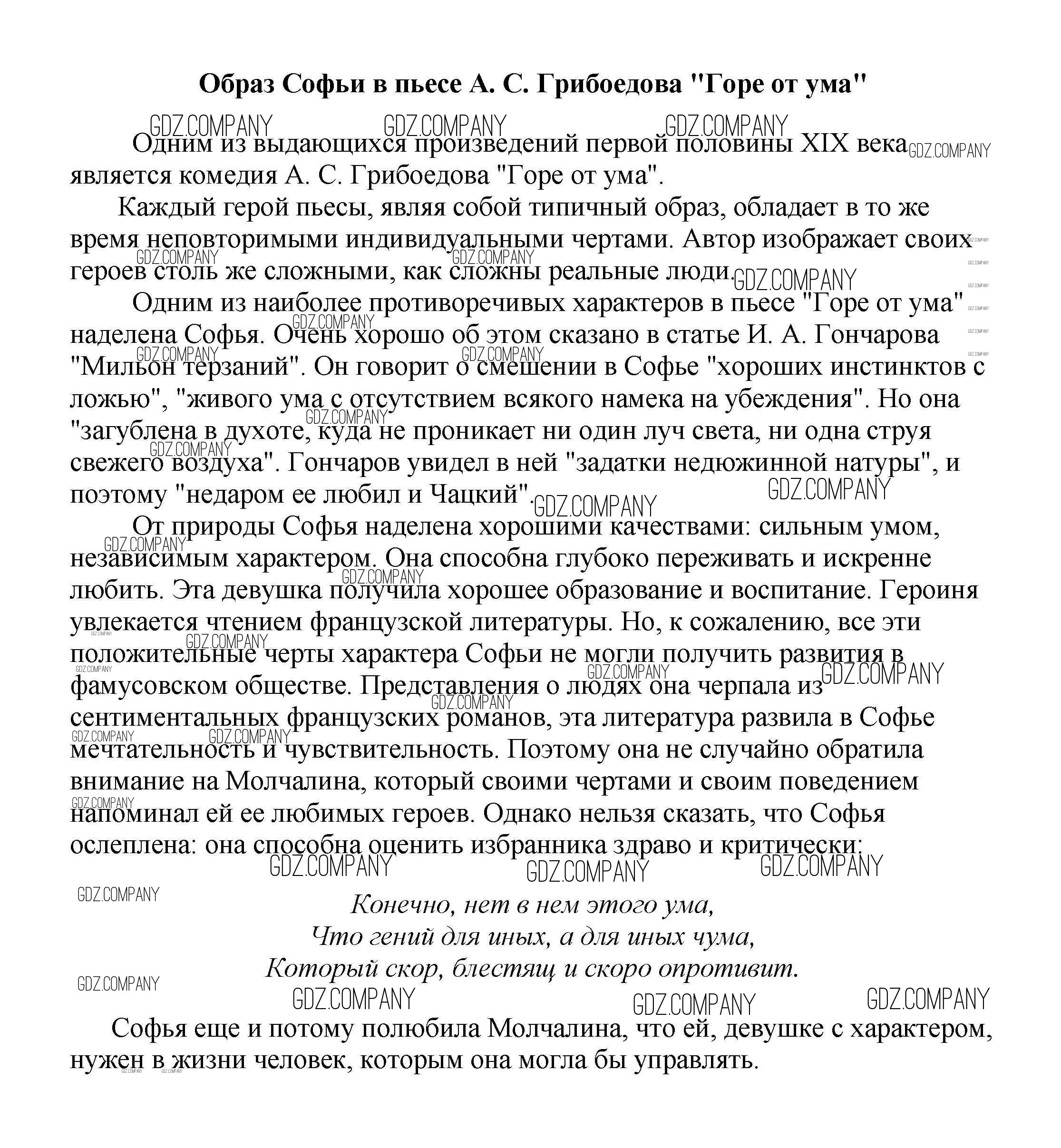 Здесь готовые ответы по Литературе за 5 (пятый) класс от Белик, Музычук Сочинения (издательство: Баро-Пресс от 2017 г.) № Образ Софьи в пьесе А. С. Грибоедова "Горе от ума