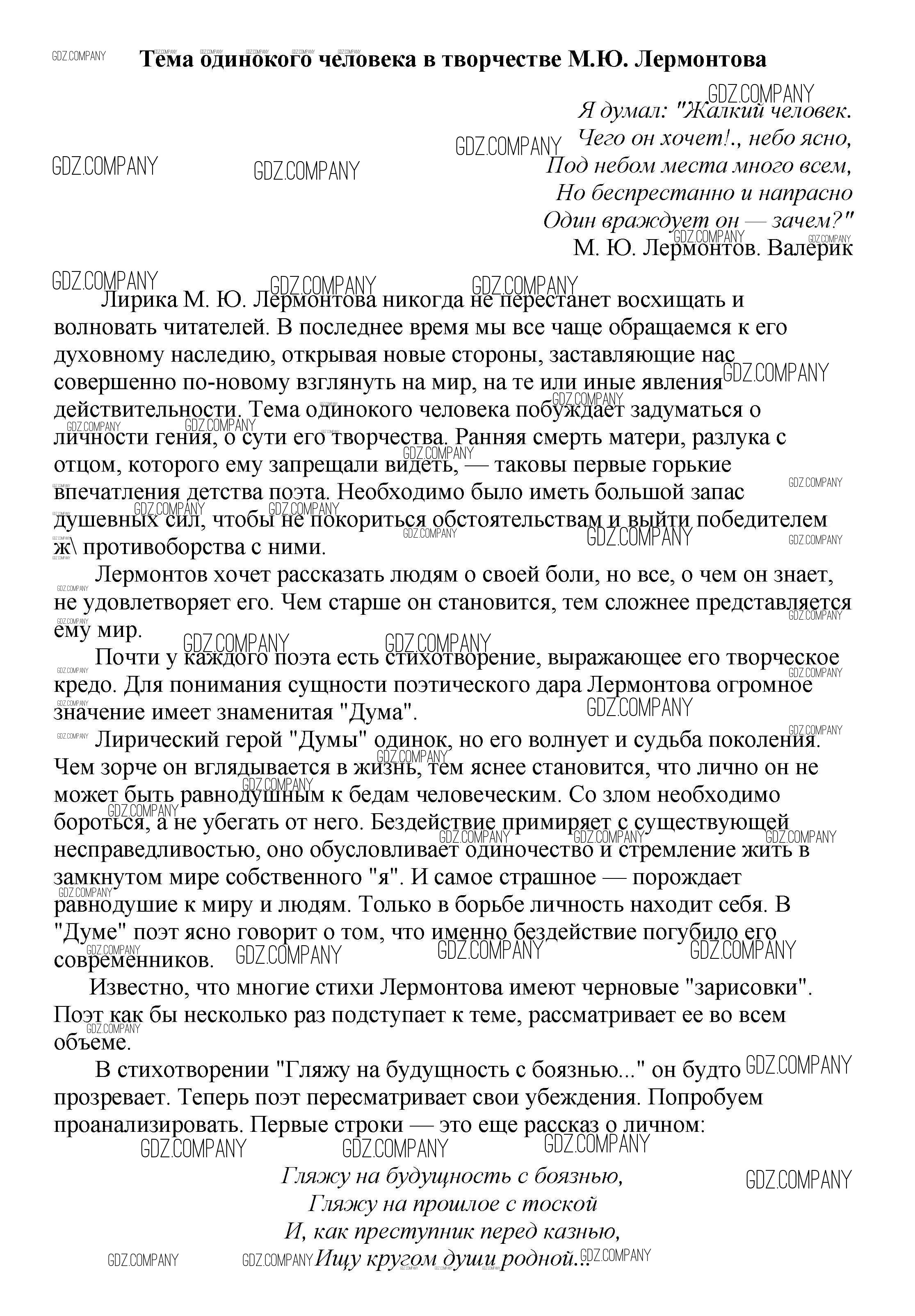 Здесь готовые ответы по Литературе за 5 (пятый) класс от Белик, Музычук Сочинения (издательство: Баро-Пресс от 2017 г.) № Тема одинокого человека в творчестве М.Ю. Лермонтова