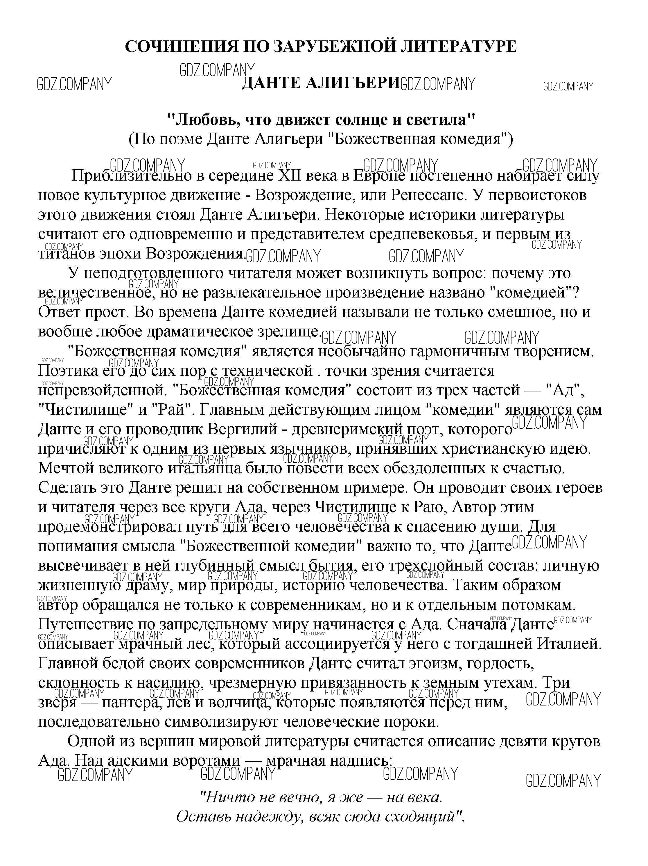 9 класс / сочинения по зарубежной литературе / "Любовь, что движет солнце и светила" (По поэме Данте Алигьери "Божественная комедия")