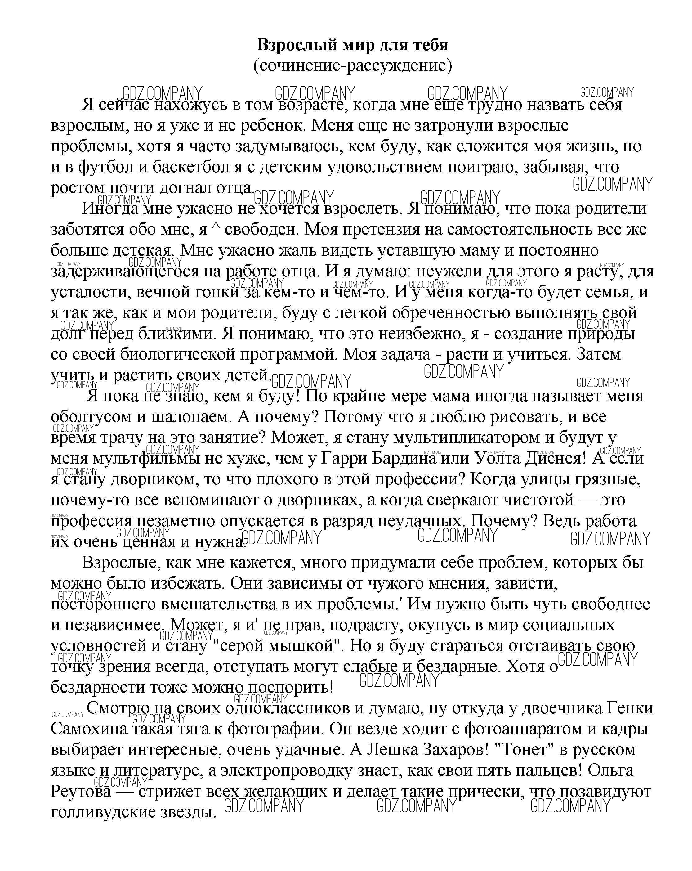 Здесь готовые ответы по Литературе за 5 (пятый) класс от Белик, Музычук Сочинения (издательство: Баро-Пресс от 2017 г.) № Взрослый мир для тебя (сочинение-рассуждение)