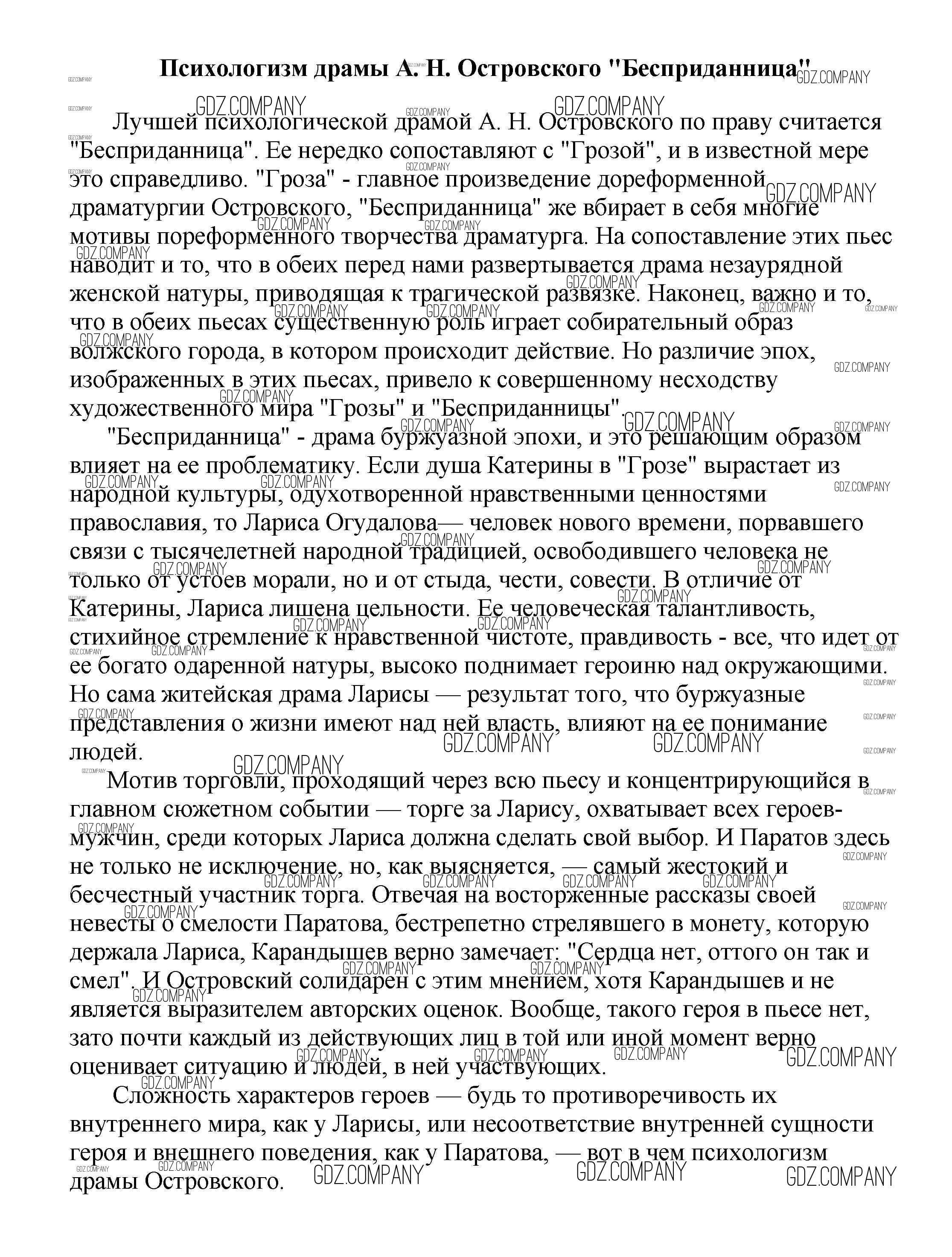 Здесь готовые ответы по Литературе за 5 (пятый) класс от Белик, Музычук Сочинения (издательство: Баро-Пресс от 2017 г.) № Психологизм драмы А. Н. Островского "Бесприданница"