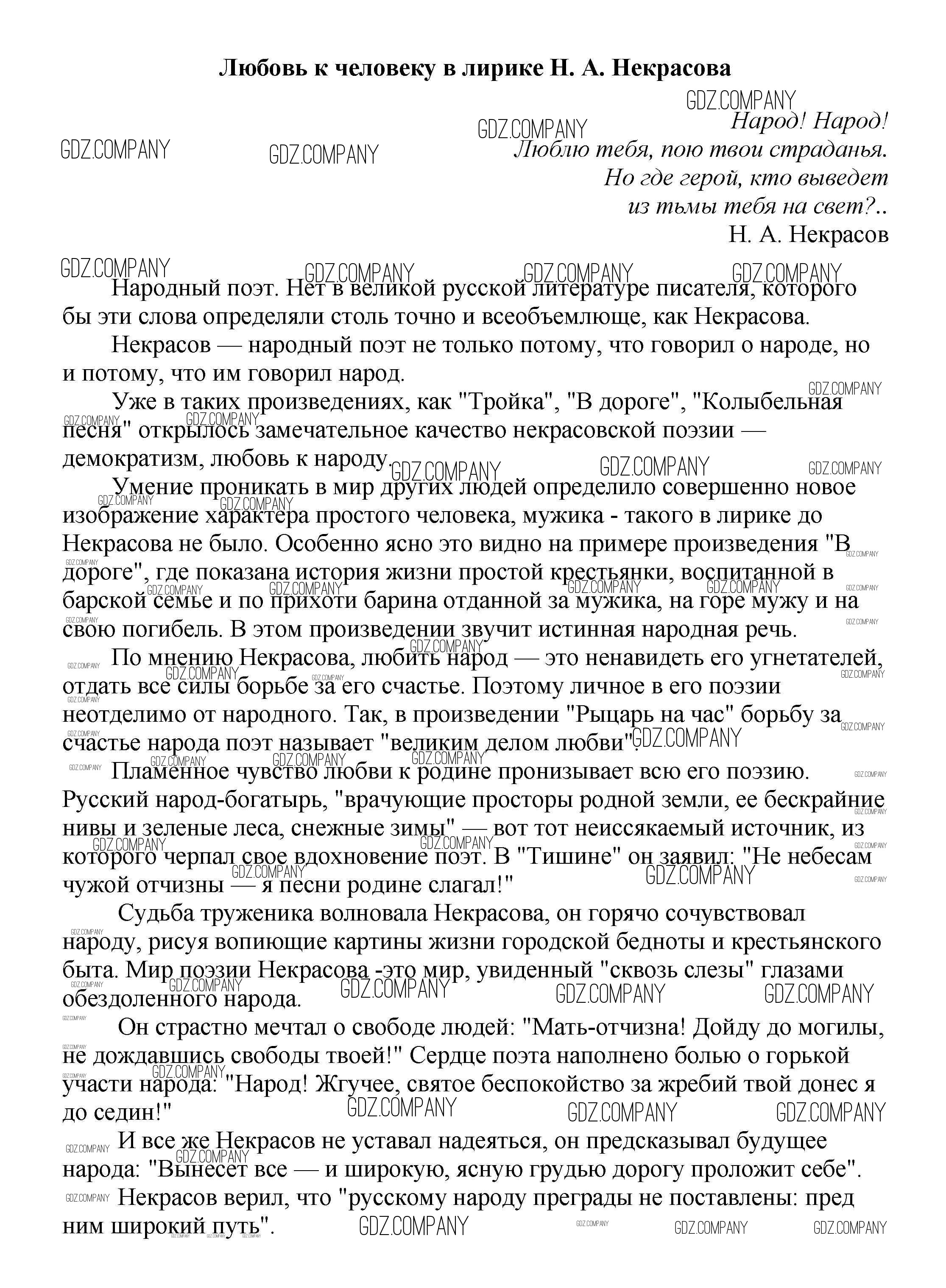 Здесь готовые ответы по Литературе за 5 (пятый) класс от Белик, Музычук Сочинения (издательство: Баро-Пресс от 2017 г.) № Любовь к человеку в лирике Н. А. Некрасова