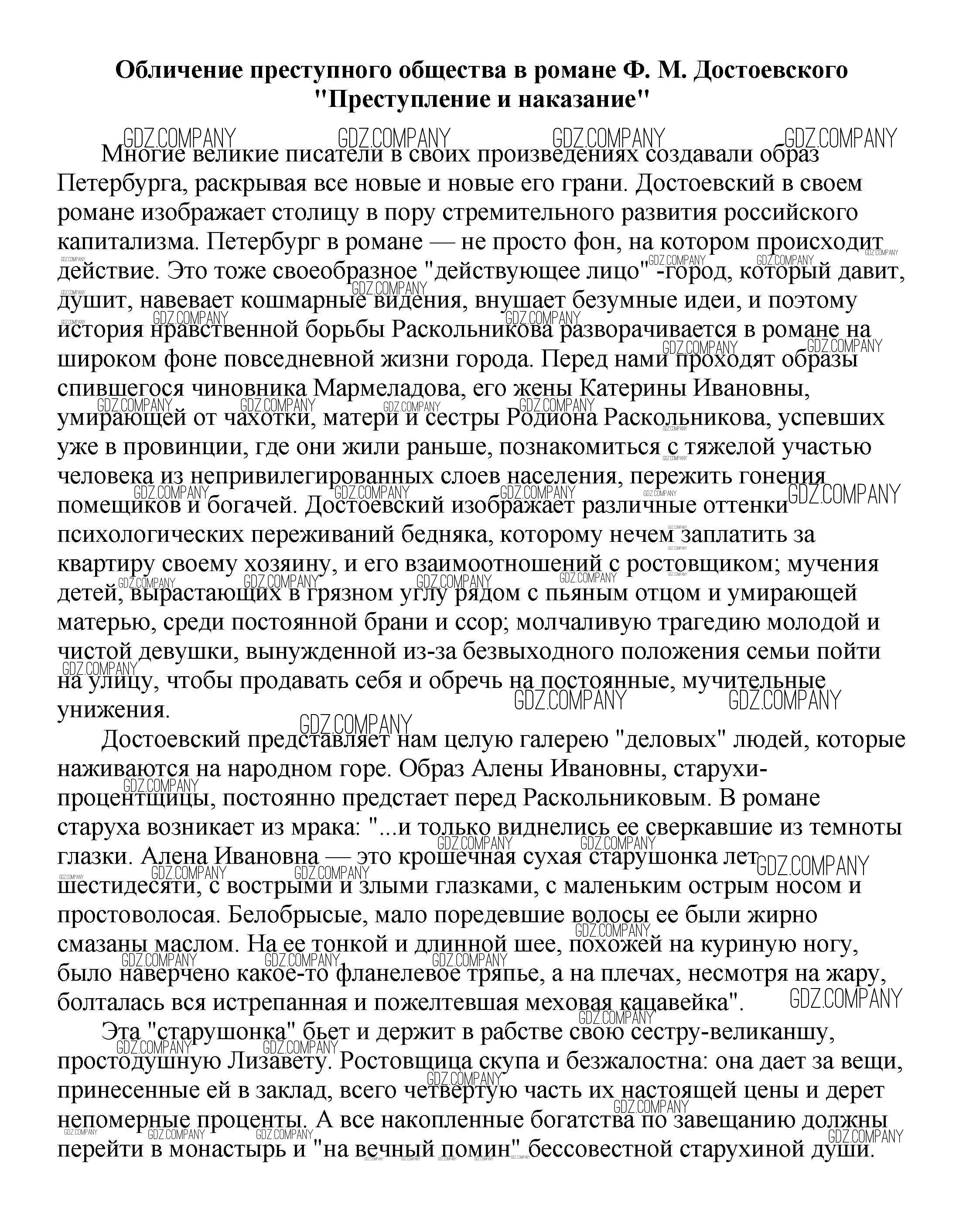 Здесь готовые ответы по Литературе за 5 (пятый) класс от Белик, Музычук Сочинения (издательство: Баро-Пресс от 2017 г.) № Обличение преступного общества в романе Ф. М. Достоевского "Преступление и наказание"
