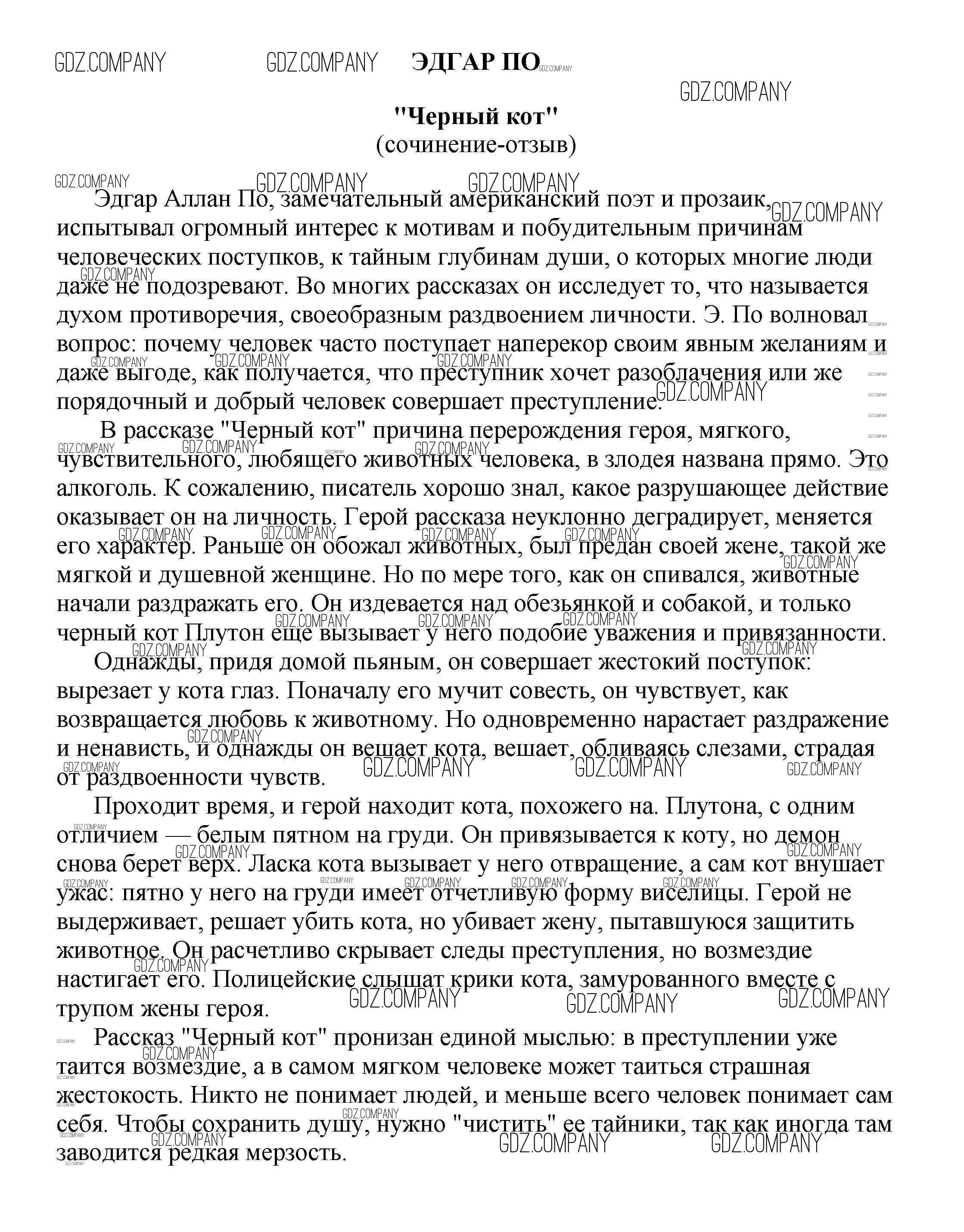 Здесь готовые ответы по Литературе за 5 (пятый) класс от Белик, Музычук Сочинения (издательство: Баро-Пресс от 2017 г.) № "Черный кот" (сочинение-отзыв) Эдгар По