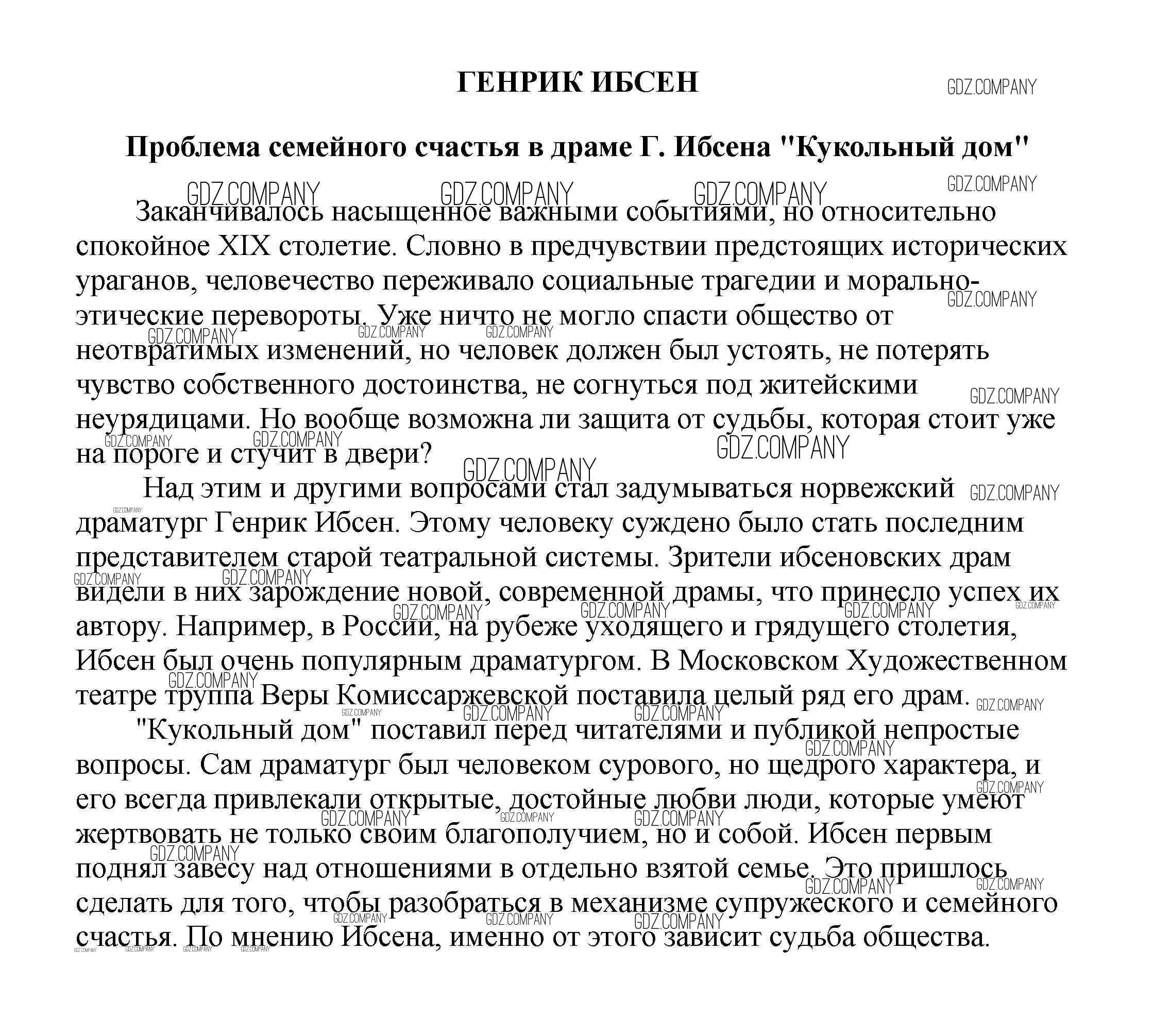 10 класс / сочинения по зарубежной литературе / Проблема семейного счастья в драме Г. Ибсена "Кукольный дом"