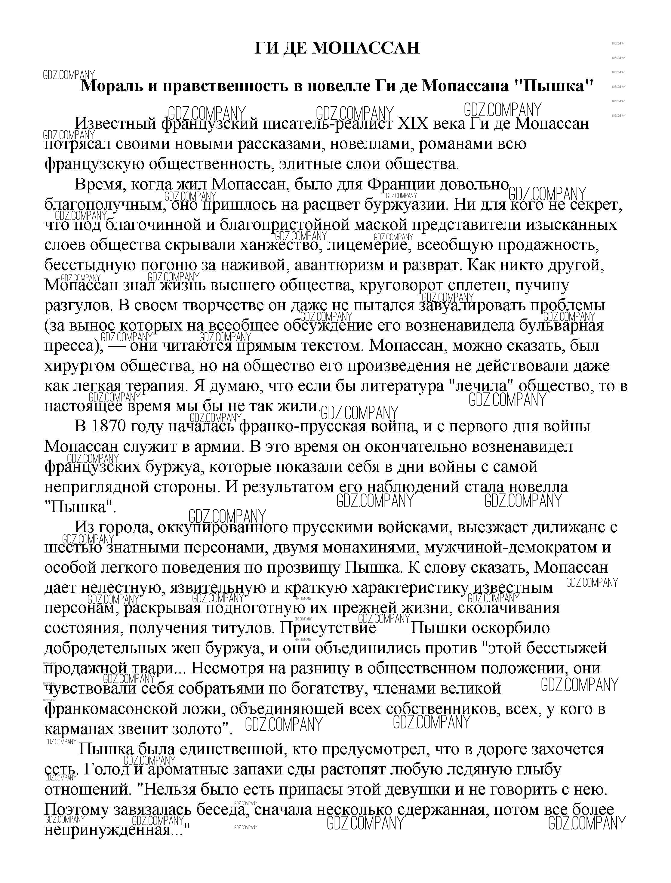 Здесь готовые ответы по Литературе за 5 (пятый) класс от Белик, Музычук Сочинения (издательство: Баро-Пресс от 2017 г.) № Мораль и нравственность в новелле Ги де Мопассана "Пышка"