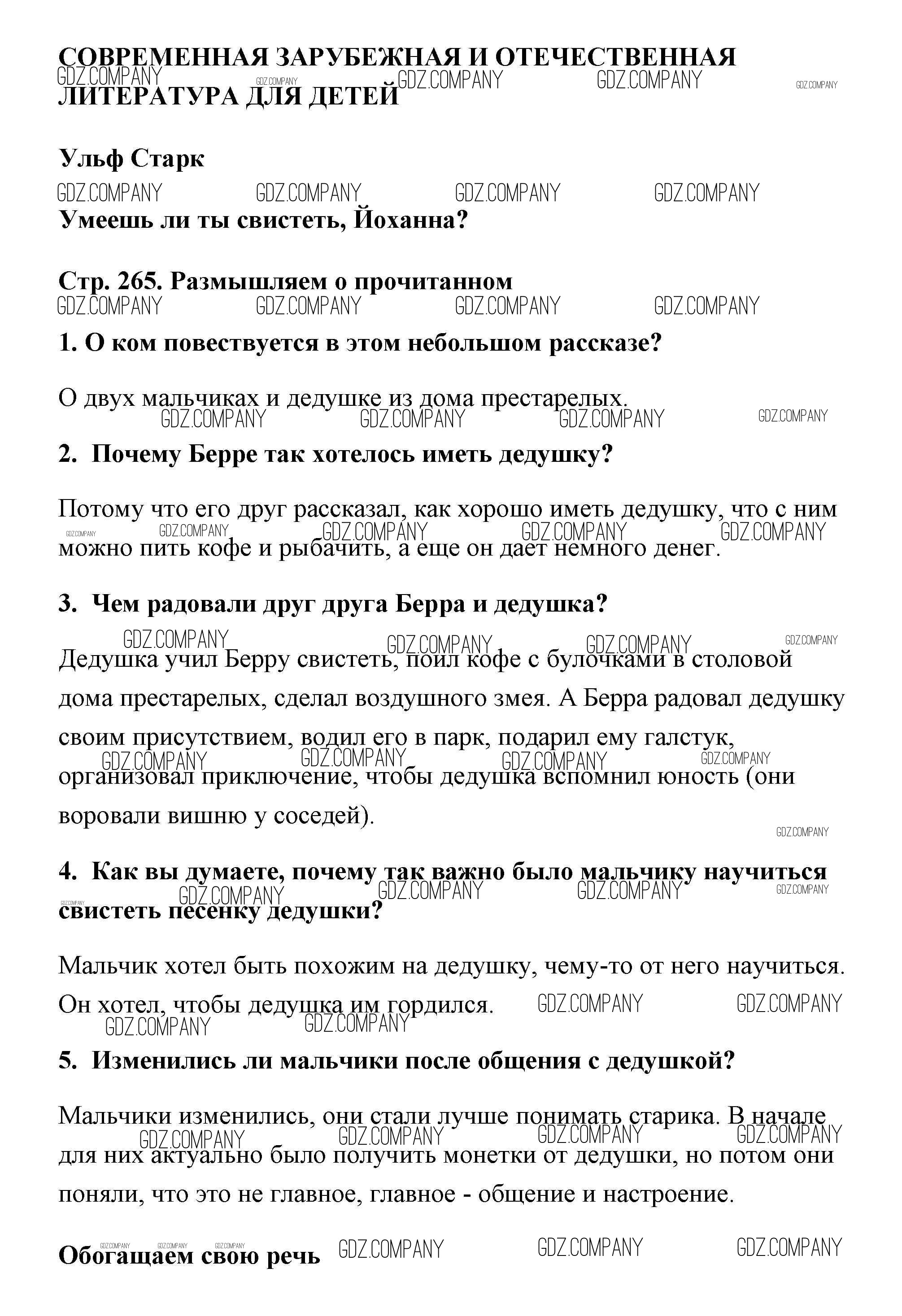 Здесь готовые ответы по Литературе за 5 (пятый) класс от Коровина, Коровин, Журавлев Учебник (издательство: Просвещение от 2016 г.) № 265