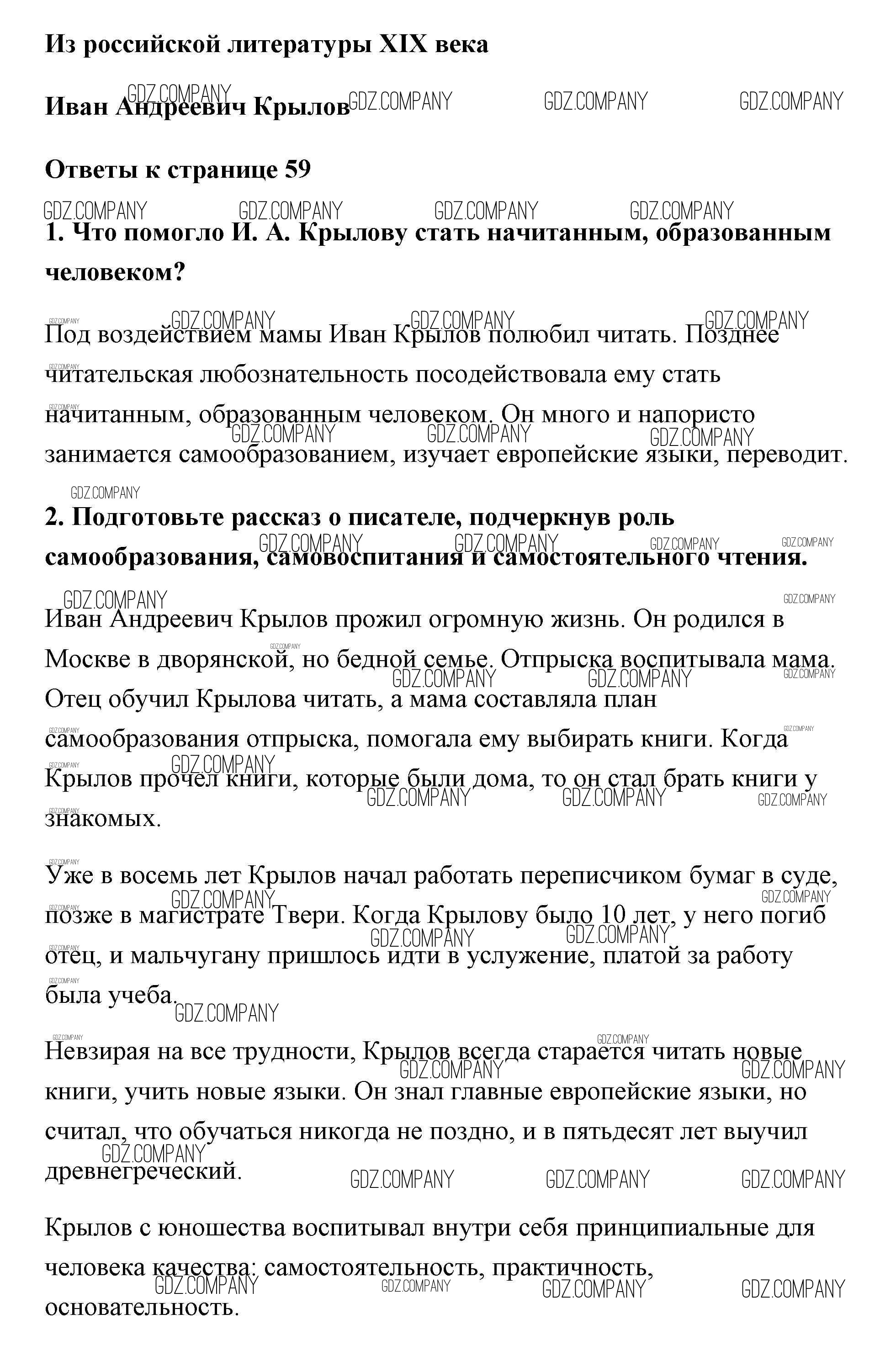 Здесь готовые ответы по Литературе за 5 (пятый) класс от Коровина, Коровин, Журавлев Учебник (издательство: Просвещение от 2016 г.) № 59