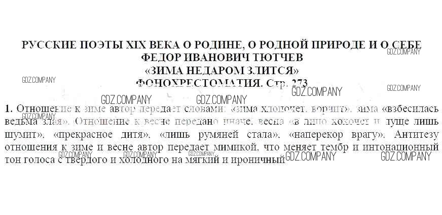 Здесь готовые ответы по Литературе за 5 (пятый) класс от Коровина, Журавлев, Коровин Учебник (издательство: Просвещение от 2019 г.) № 273