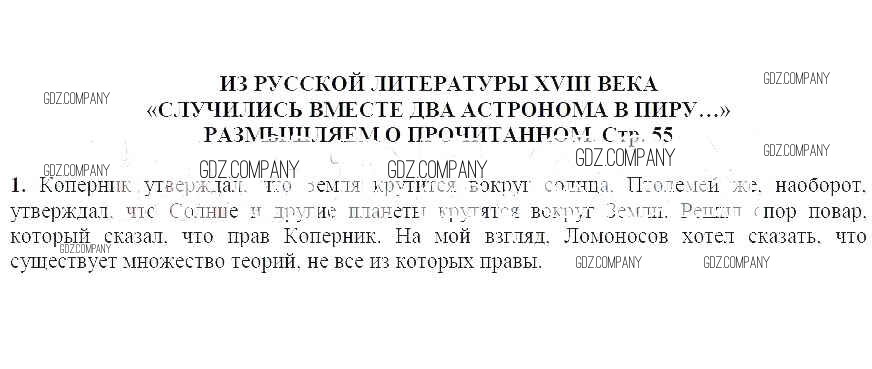 Здесь готовые ответы по Литературе за 5 (пятый) класс от Коровина, Журавлев, Коровин Учебник (издательство: Просвещение от 2019 г.) № 55