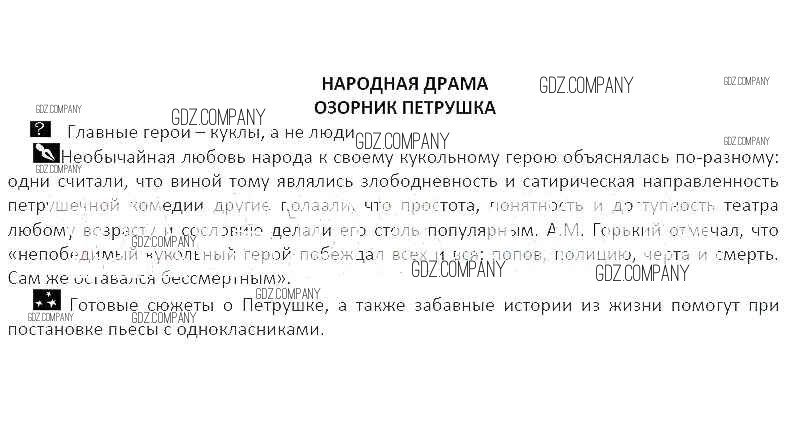 Здесь готовые ответы по Литературе за 5 (пятый) класс от Курдюмова Рабочая тетрадь Вертикаль (издательство: Дрофа от 2017 г.) № Народная драма Озорник Петрушка