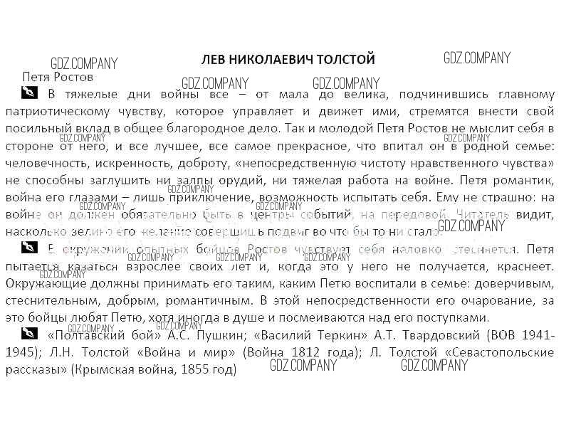 Здесь готовые ответы по Литературе за 5 (пятый) класс от Курдюмова Рабочая тетрадь Вертикаль (издательство: Дрофа от 2017 г.) № Лев Николаевич Толстой. Петя Ростов