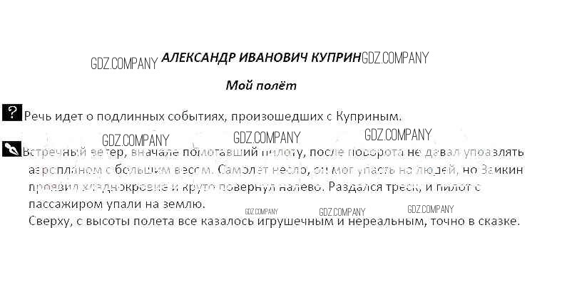 Здесь готовые ответы по Литературе за 5 (пятый) класс от Курдюмова Рабочая тетрадь Вертикаль (издательство: Дрофа от 2017 г.) № Александр Иванович Куприн Мой полёт