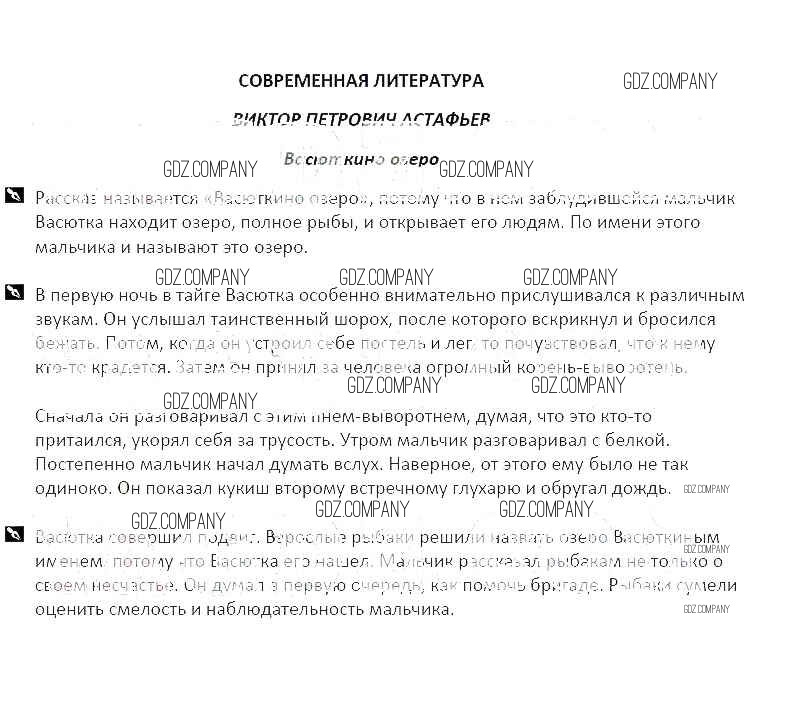 Здесь готовые ответы по Литературе за 5 (пятый) класс от Курдюмова Рабочая тетрадь Вертикаль (издательство: Дрофа от 2017 г.) № Виктор Петрович Астафьев Васюткино озеро