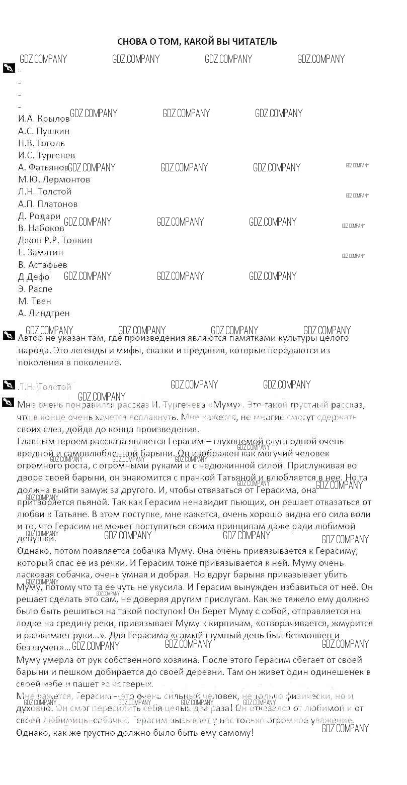 Здесь готовые ответы по Литературе за 5 (пятый) класс от Курдюмова Рабочая тетрадь Вертикаль (издательство: Дрофа от 2017 г.) № Снова о том, какой Вы читатель
