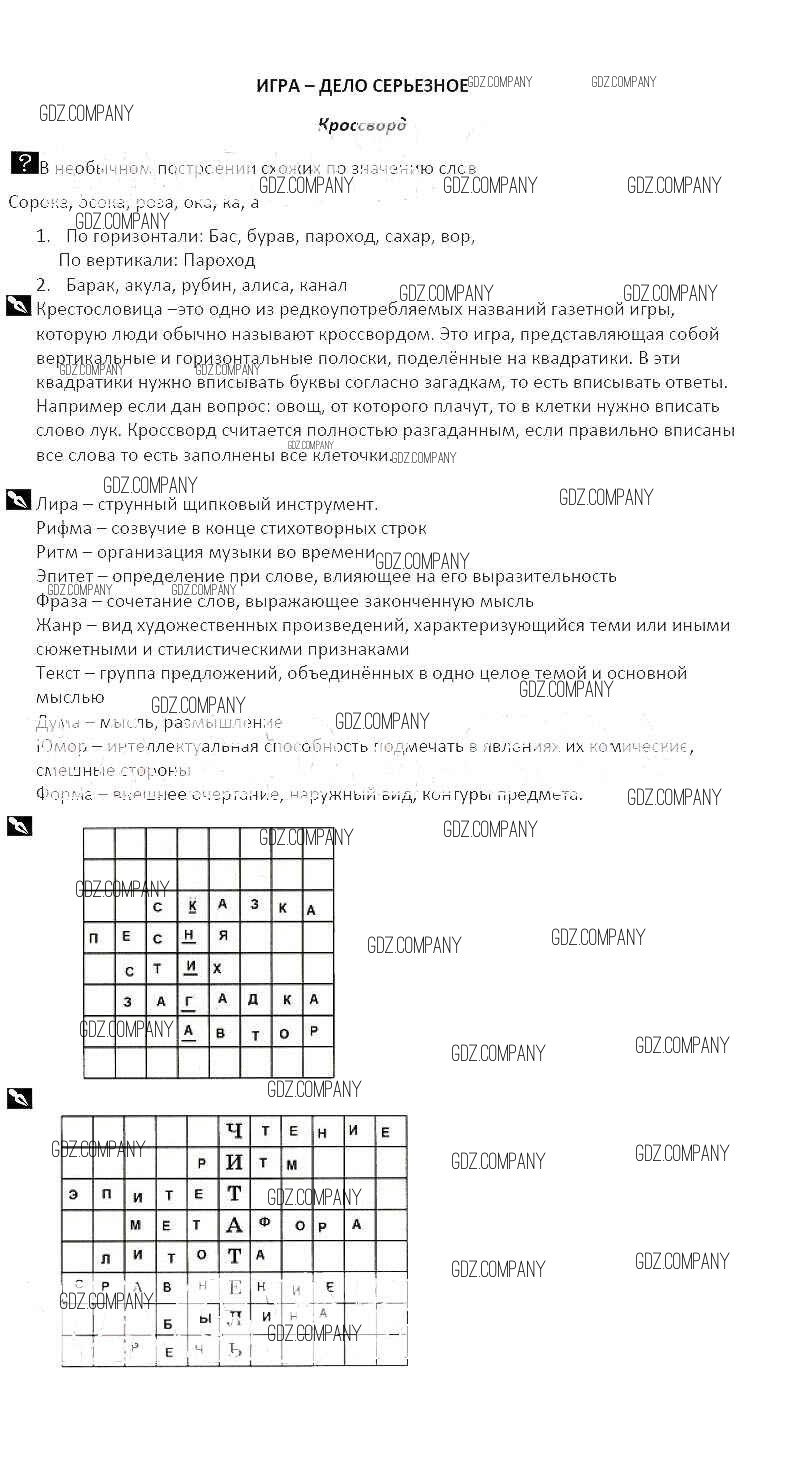 Здесь готовые ответы по Литературе за 5 (пятый) класс от Курдюмова Рабочая тетрадь Вертикаль (издательство: Дрофа от 2017 г.) № Кроссворд