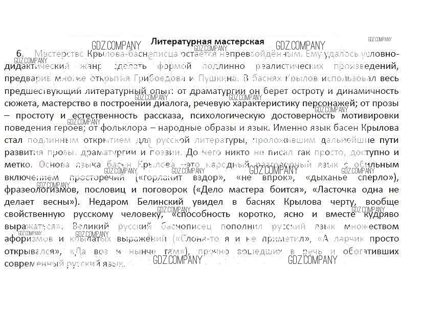 Здесь готовые ответы по Литературе за 5 (пятый) класс от Ланин, Устинова, Шамчикова, Андрейченко Рабочая тетрадь Алгоритм успеха (издательство: Вентана-граф от 2017 г.) № 6