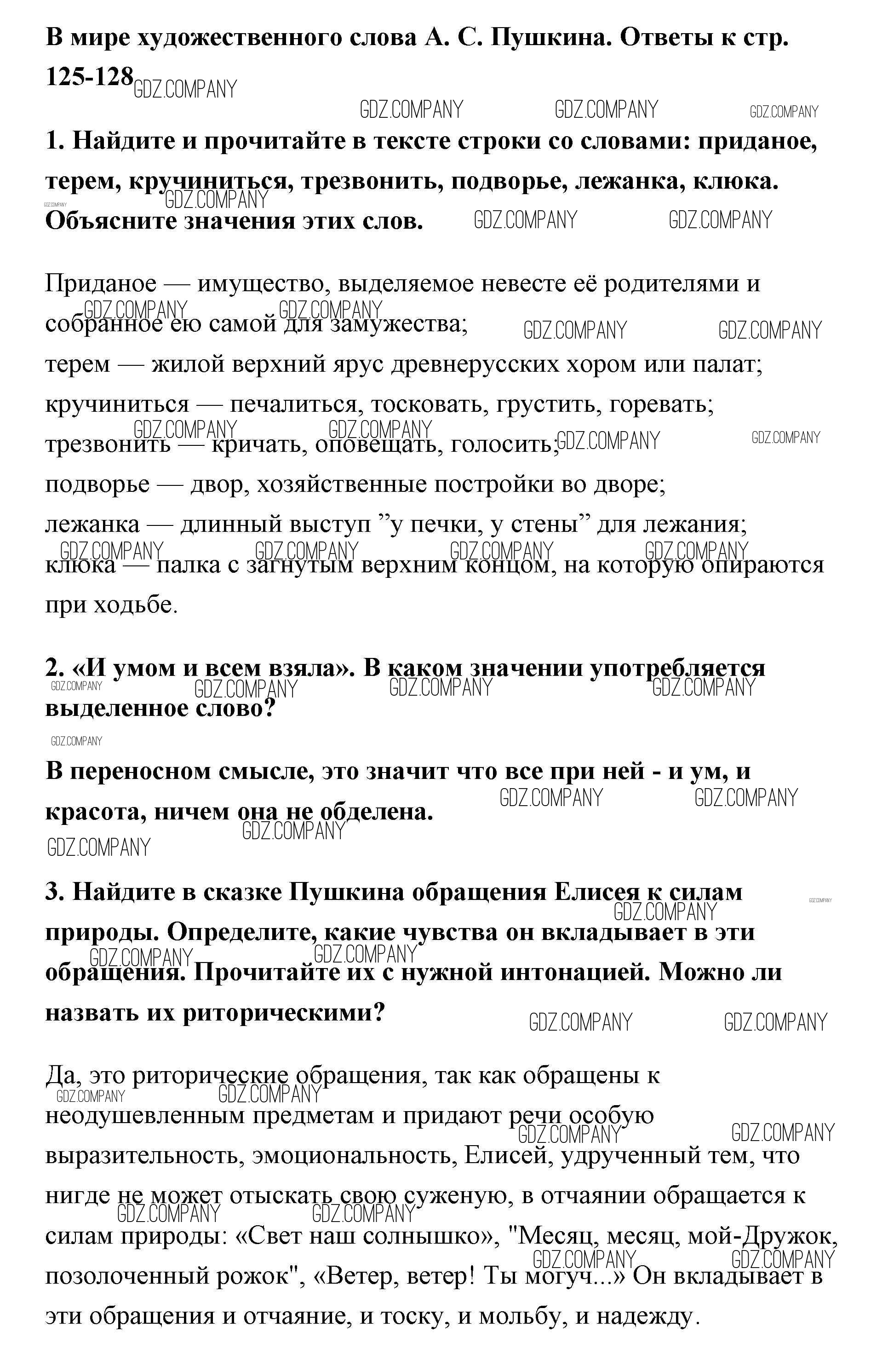 Здесь готовые ответы по Литературе за 5 (пятый) класс от Меркин Учебник Инновационная школа (издательство: Русское слово от 2016 г.) № 125-128