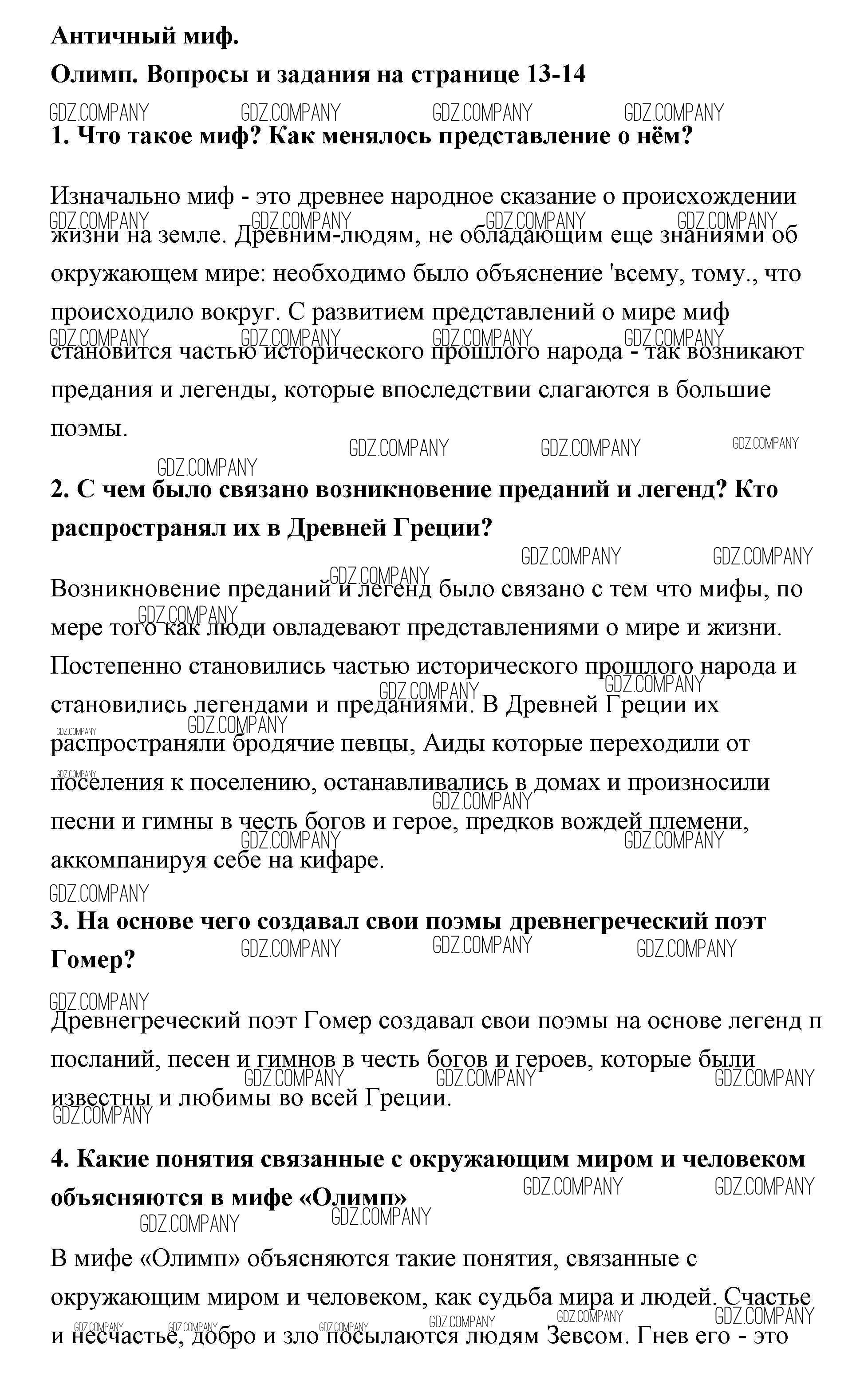 Здесь готовые ответы по Литературе за 5 (пятый) класс от Меркин Учебник Инновационная школа (издательство: Русское слово от 2016 г.) № 13-14