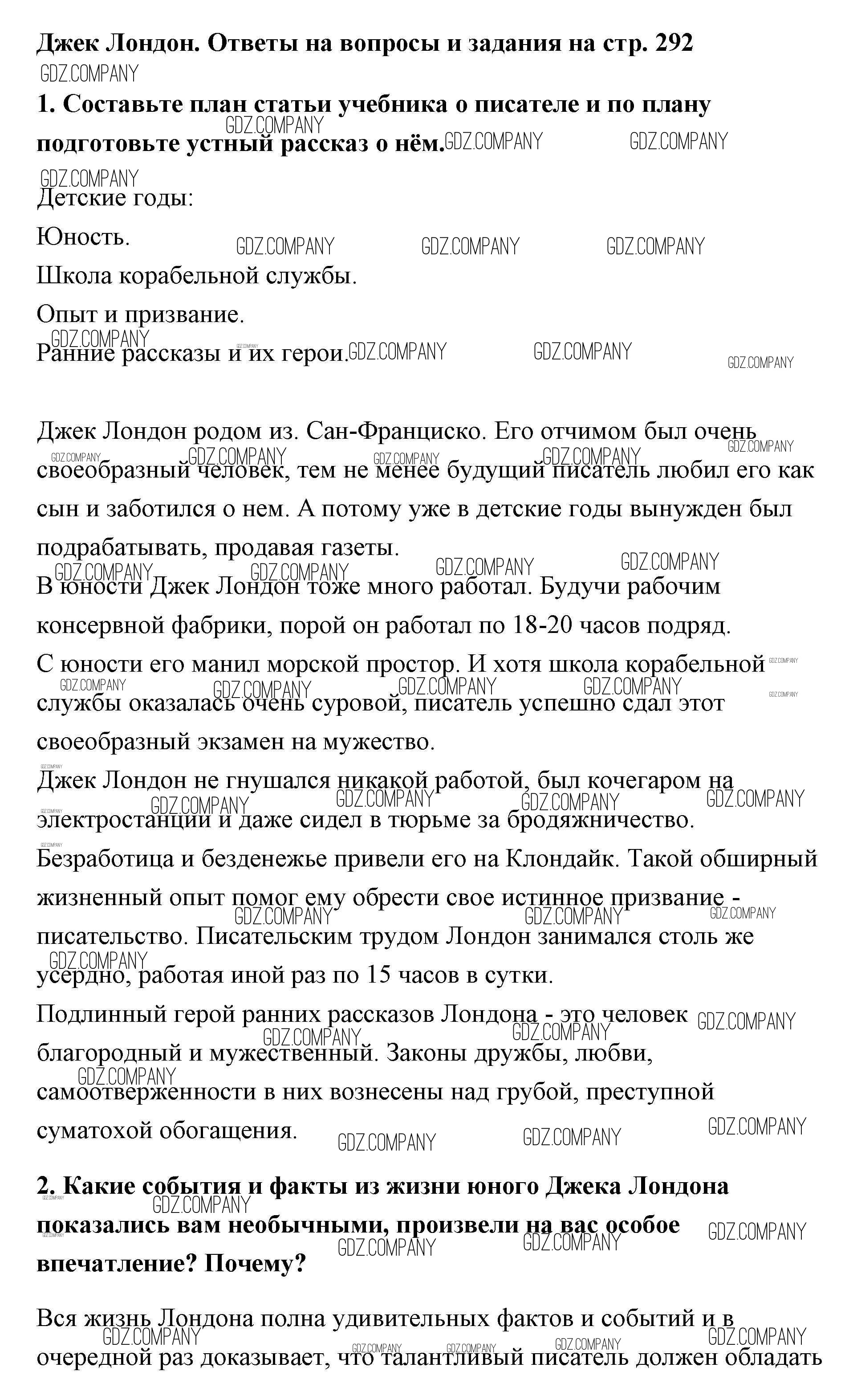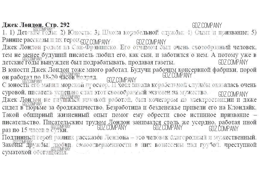 Здесь готовые ответы по Литературе за 5 (пятый) класс от Меркин Учебник Инновационная школа (издательство: Русское слово от 2016 г.) № 292