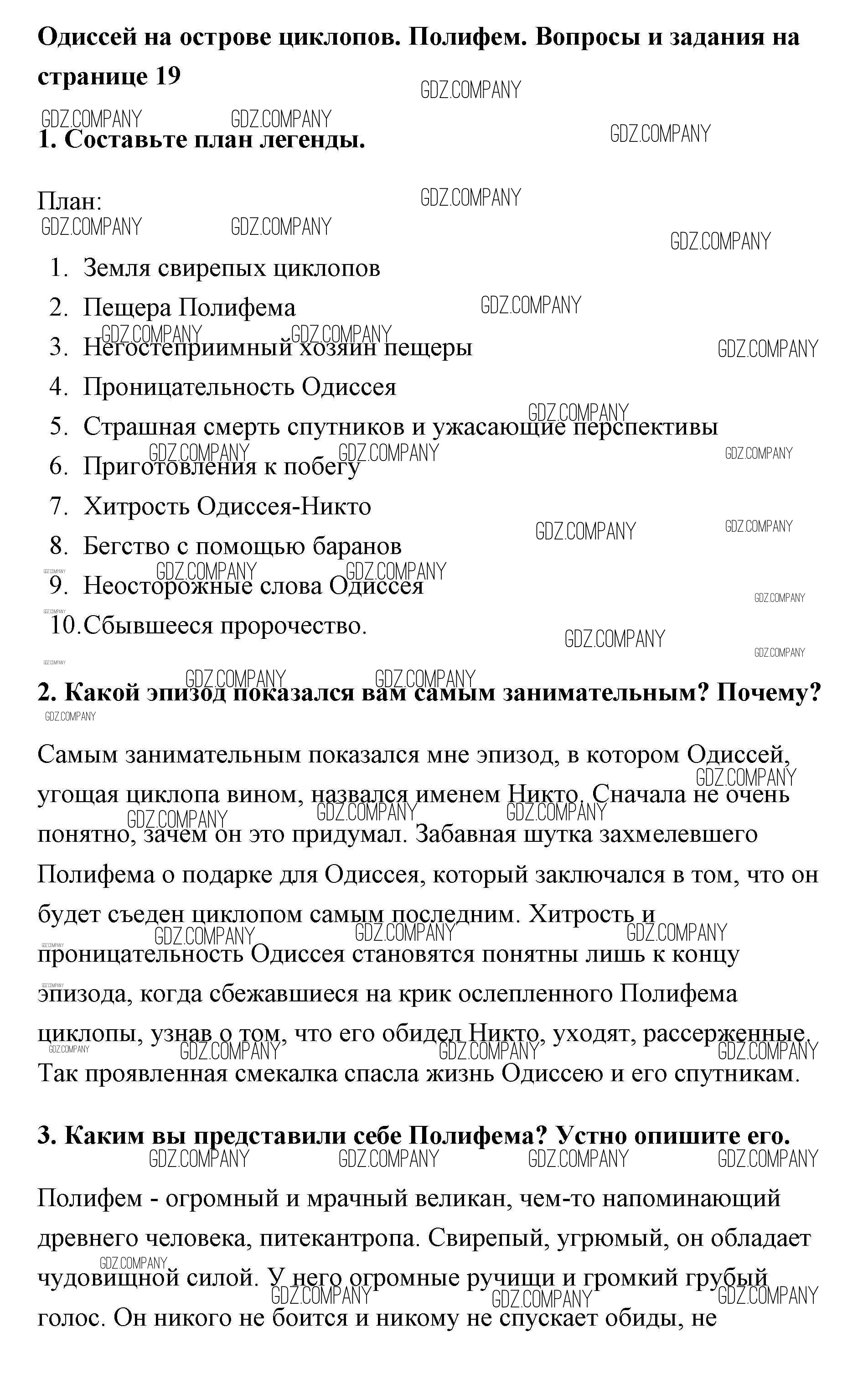 Здесь готовые ответы по Литературе за 5 (пятый) класс от Меркин Учебник Инновационная школа (издательство: Русское слово от 2016 г.) № 19