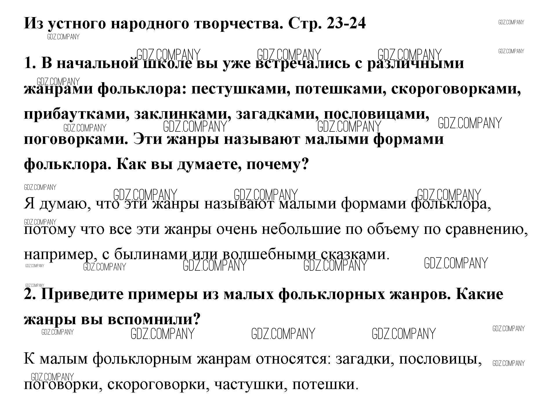 Здесь готовые ответы по Литературе за 5 (пятый) класс от Меркин Учебник Инновационная школа (издательство: Русское слово от 2016 г.) № 23-24