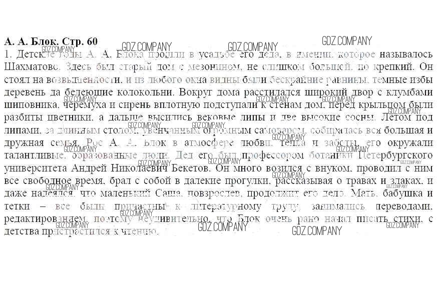 Здесь готовые ответы по Литературе за 5 (пятый) класс от Меркин Учебник Инновационная школа (издательство: Русское слово от 2016 г.) № 60