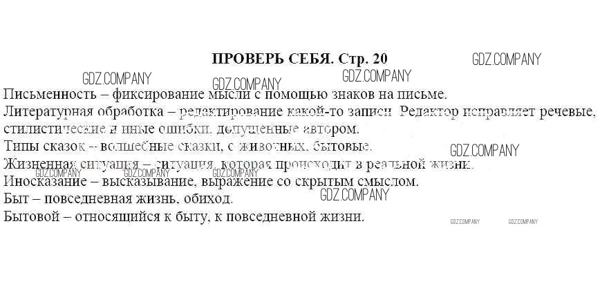 Здесь готовые ответы по Литературе за 5 (пятый) класс от Москвин Учебник Алгоритм успеха (издательство: Вентана-граф от 2020 г.) № Проверь себя (стр. 20)