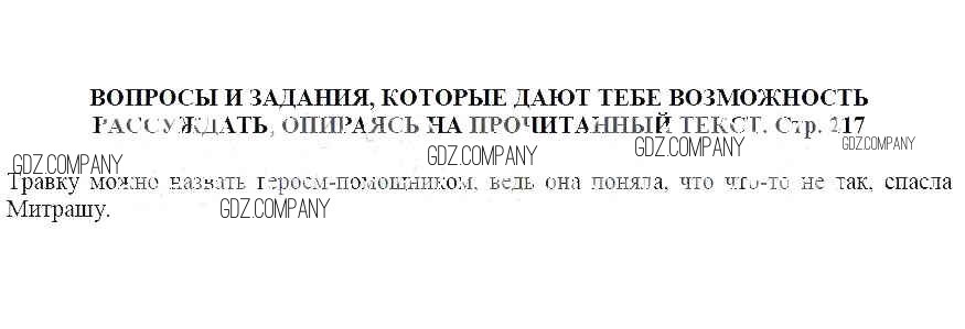 часть 1 / Кладовая солнца / Вопросы и задания, которые дают тебе возможность рассуждать, опираясь на прочитанный текст (стр. 217)
